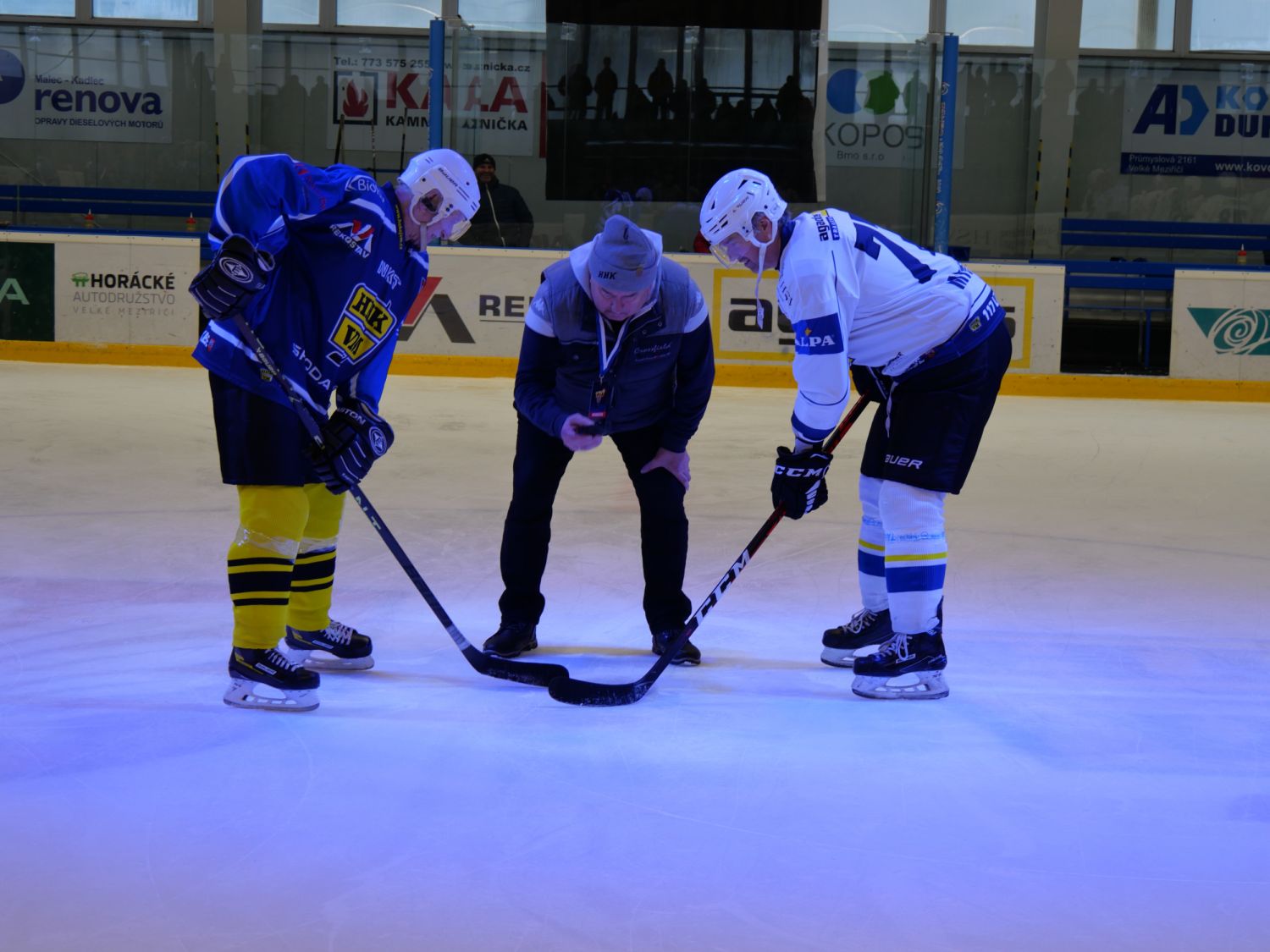 Vše vypuklo hodinu po poledni, kdy se na ledě představily hokejové legendy – domácí proti přespolním. Největší hvězdou přespolních byl jistě mistr světa v hokeji Tomáš Rolínek, který tentokrát neúřadoval v útočném pásmu, ale v bráně. Úvodní buly vhodila domácí legenda Vlastimil Zachoval. Přespolní nakonec zvítězili 9:6.