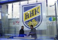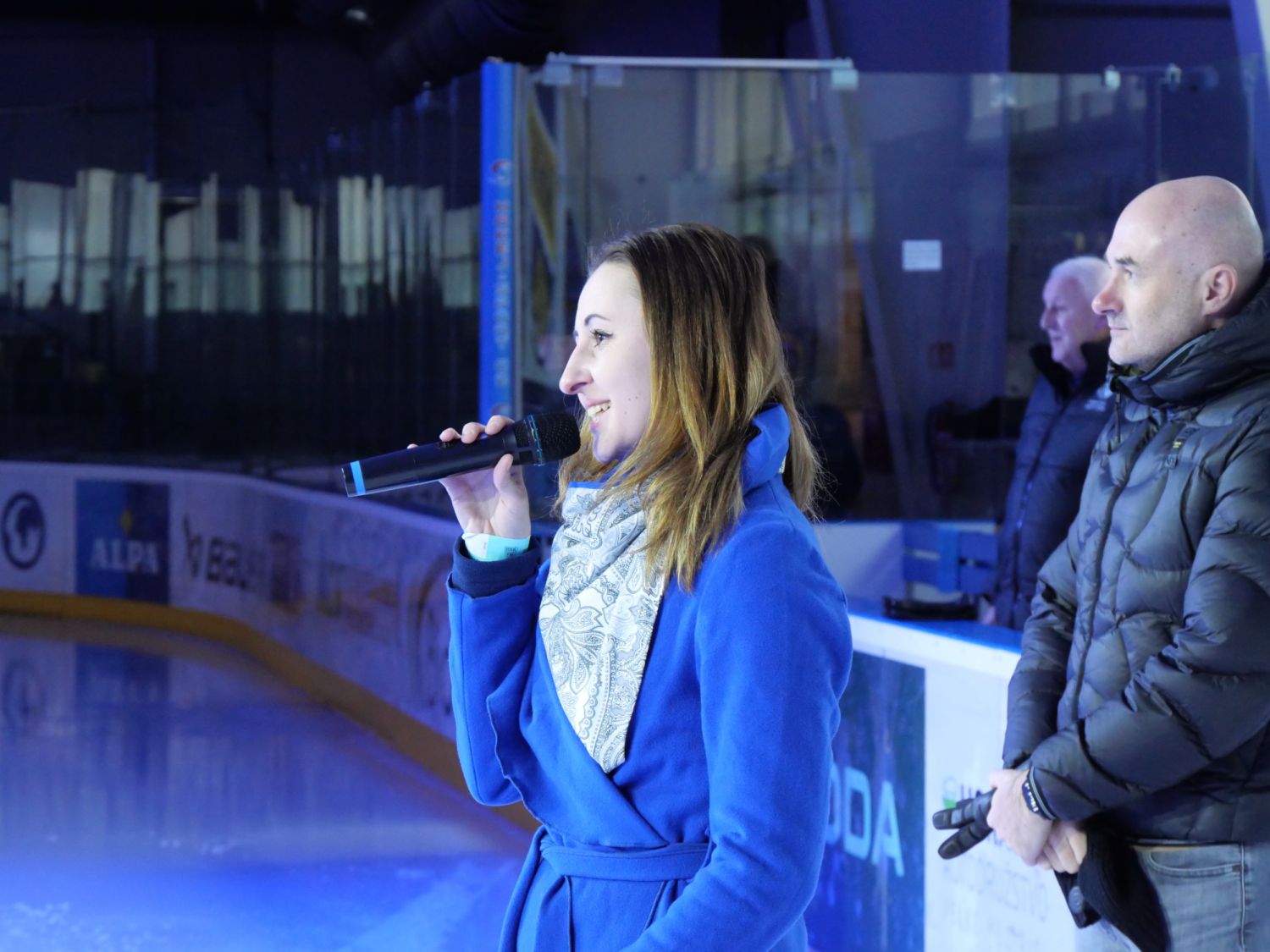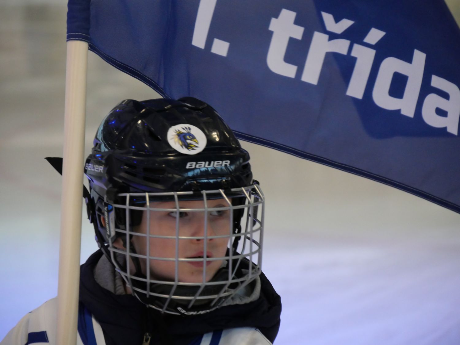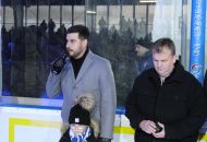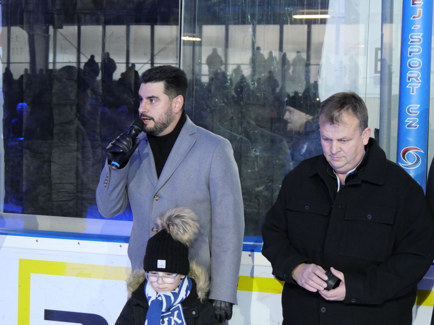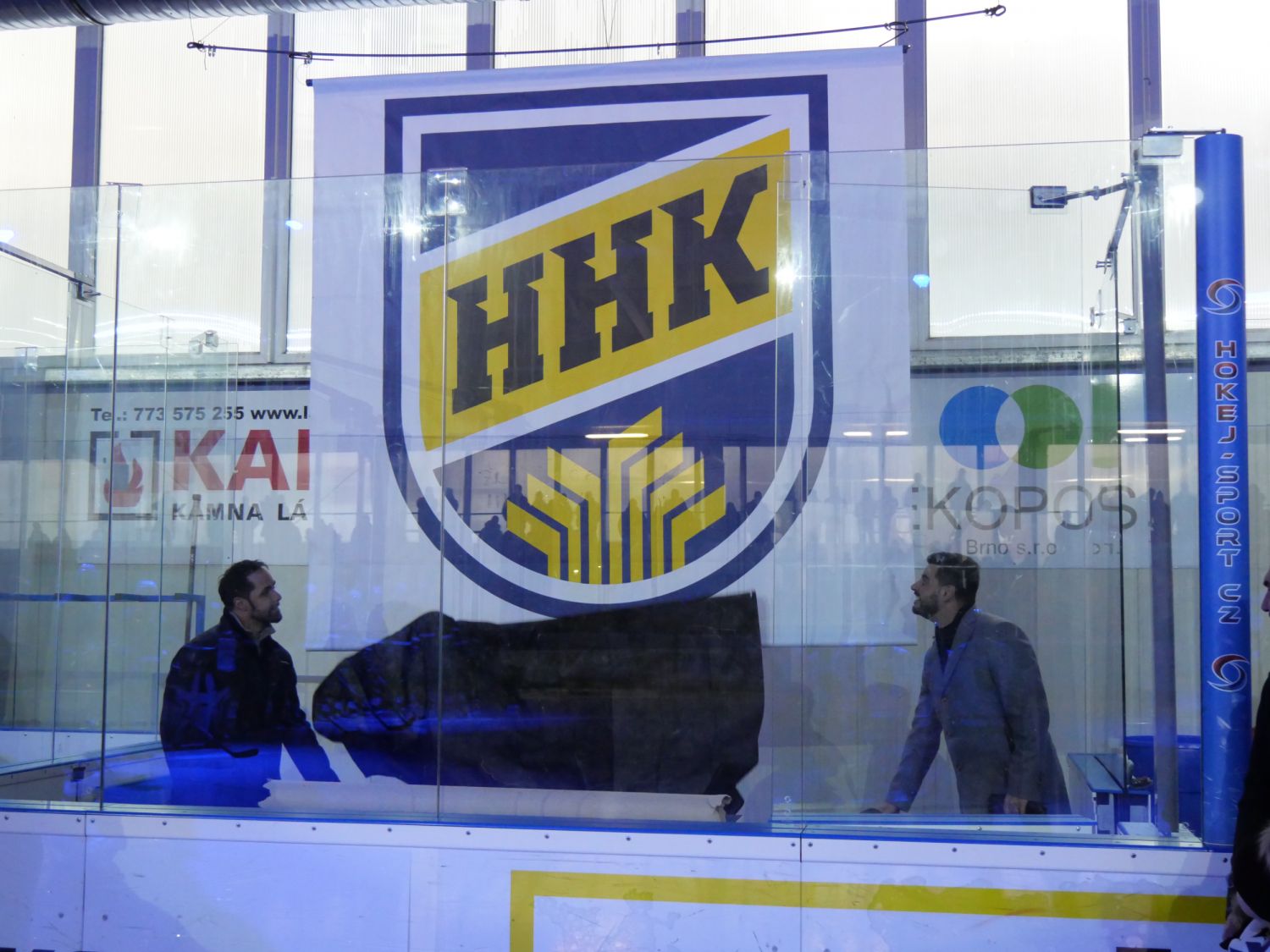 A pak přišel slavnostní okamžik, kdy starosta města Alexandros Kaminaras spolu s Tomášem Rolínkem odhalili nové logo Horáckého hokejového klubu Velké Meziříčí.