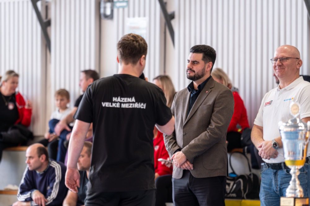 Předávání cen, medailí a pohárů se zhostil na výbornou předseda oddílu házené a Sokola VM Ladislav Šidlo, majitel firmy hlavního sponzora turnaje JUST IT Solutions s.r.o. Michael Bezděk a starosta města Velkého Meziříčí Alexandros Kaminaras.