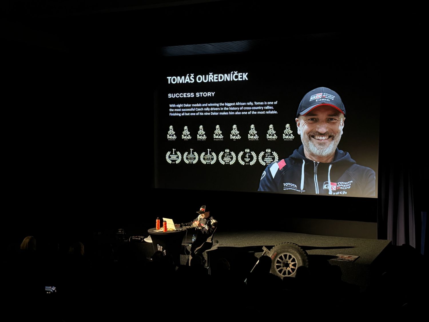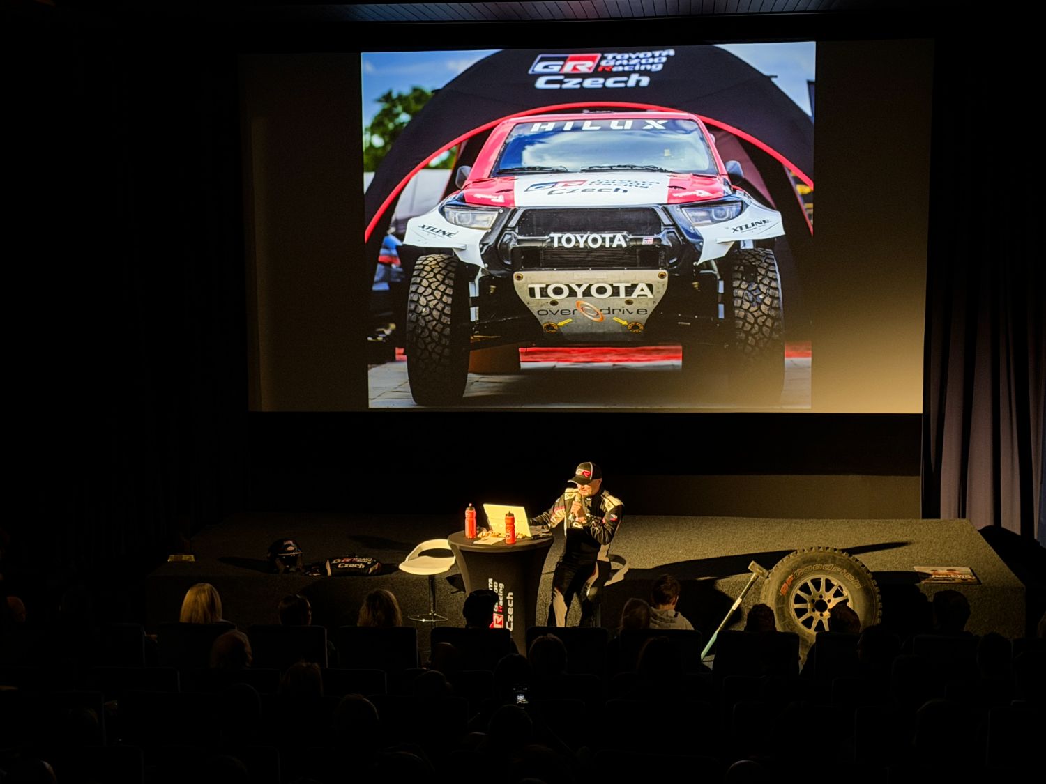 Součástí programu byla také videoprojekce, která divákům nabídla autentické záběry přímo z trati a přenesla je do nehostinných pouští i náročného terénu. V předsálí si návštěvníci mohli zakoupit tematický merch a odnést si tak z večera i malou památku.