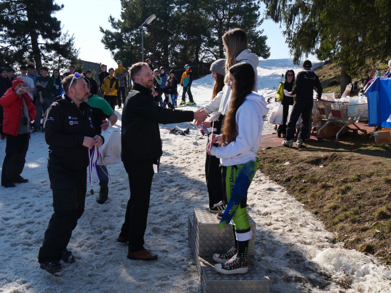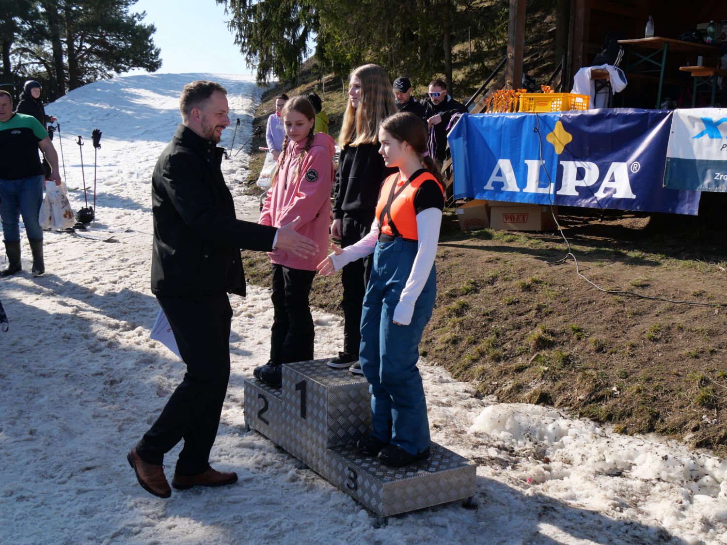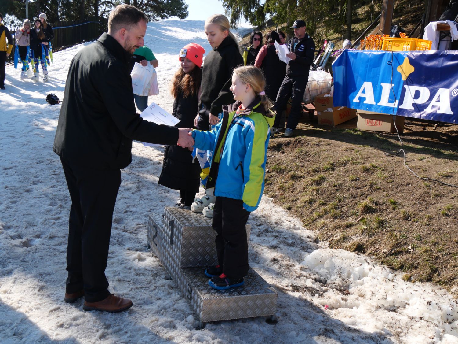 Za krásného teplého počasí a na kvalitně připraveném sněhu se závodilo celé dopoledne a krátce po 13 hodině byly předány medaile a ceny, čehož se mimo jiné zhostil místostarosta Velkého Meziříčí Martin Kaman.