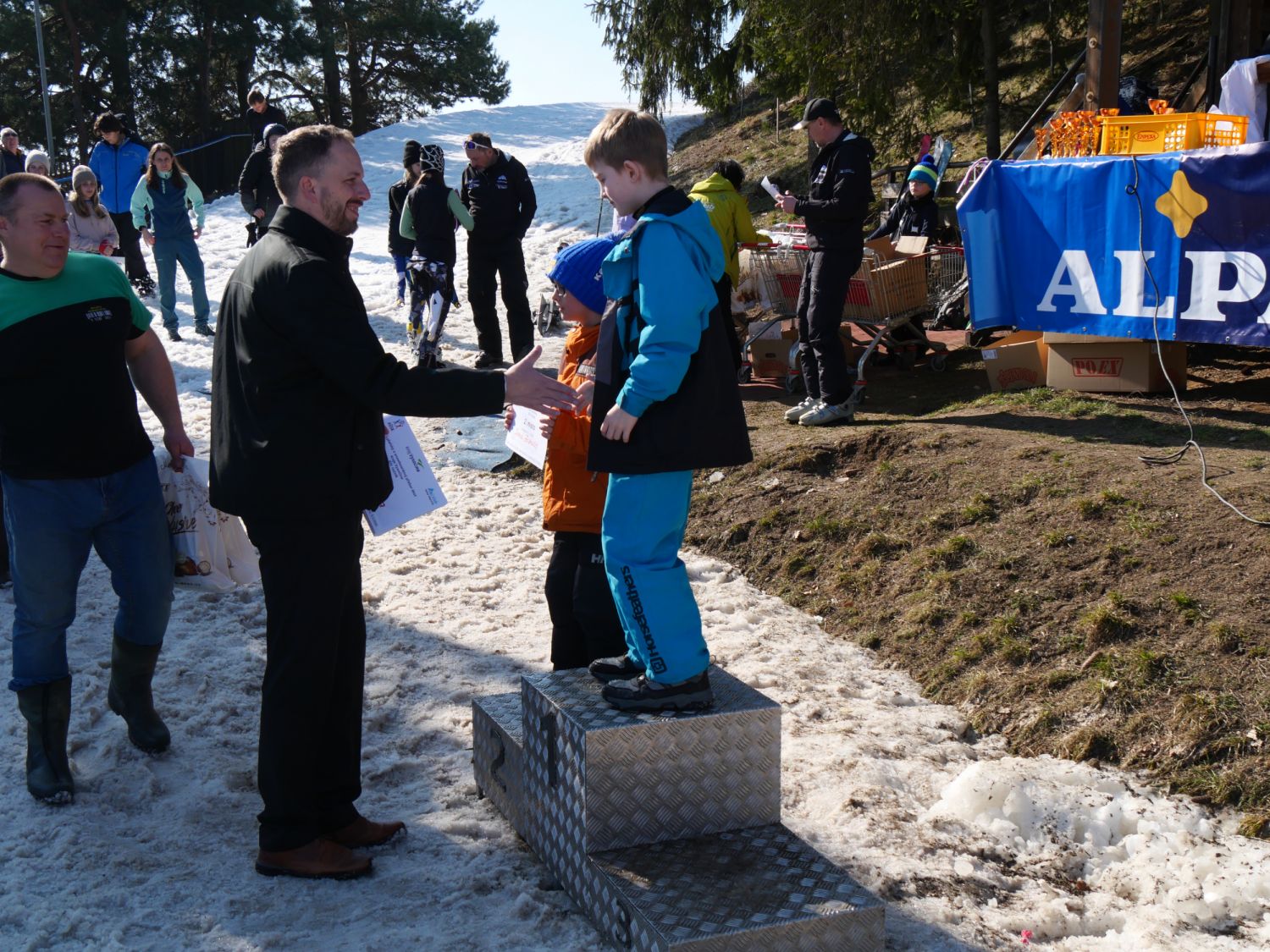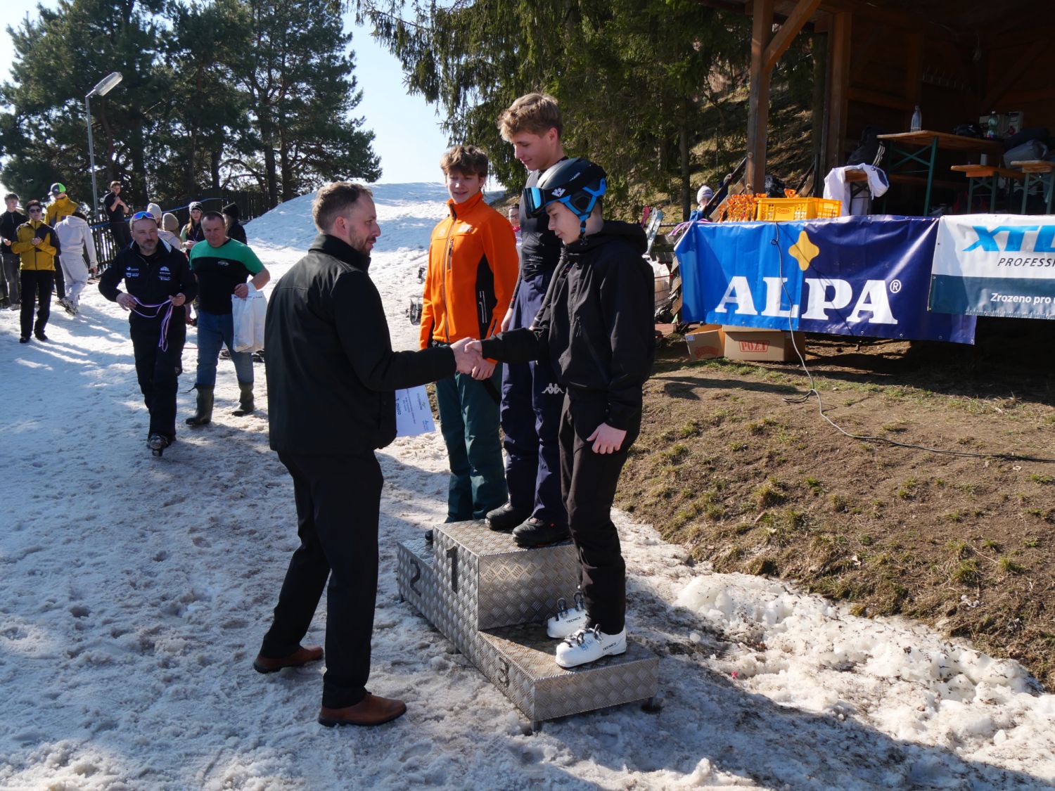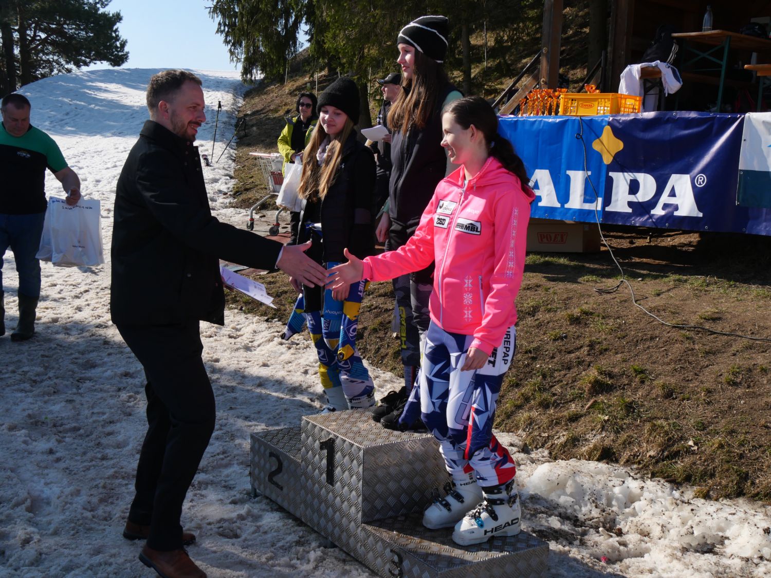 Za krásného teplého počasí a na kvalitně připraveném sněhu se závodilo celé dopoledne a krátce po 13 hodině byly předány medaile a ceny, čehož se mimo jiné zhostil místostarosta Velkého Meziříčí Martin Kaman.