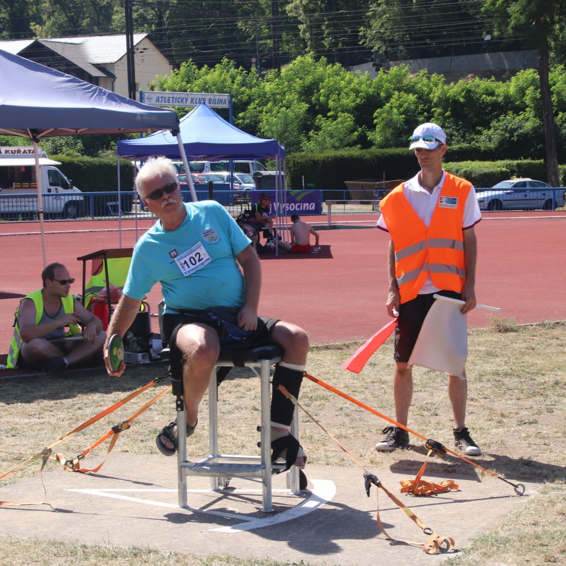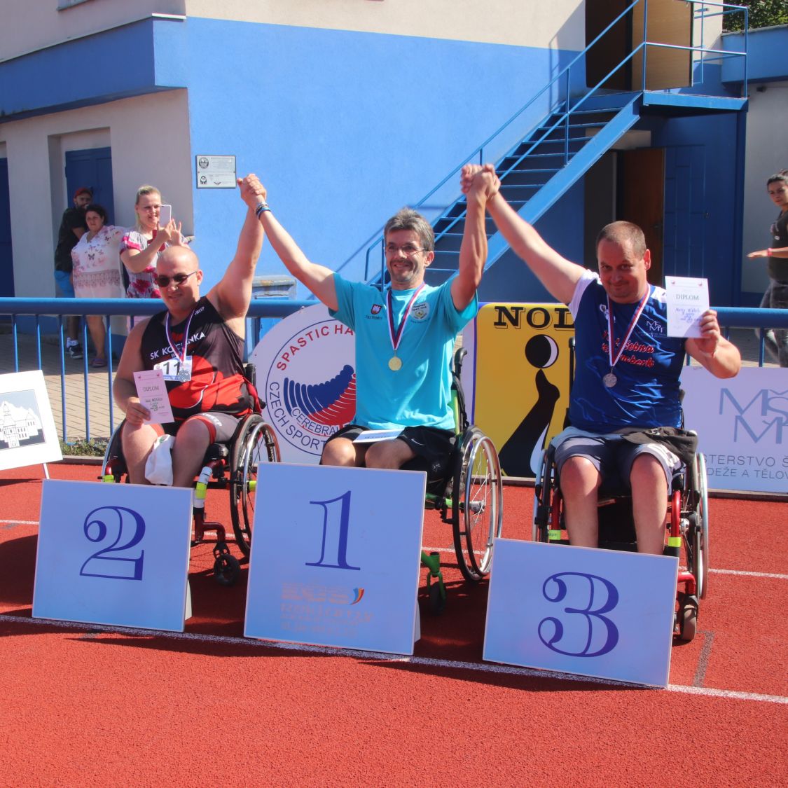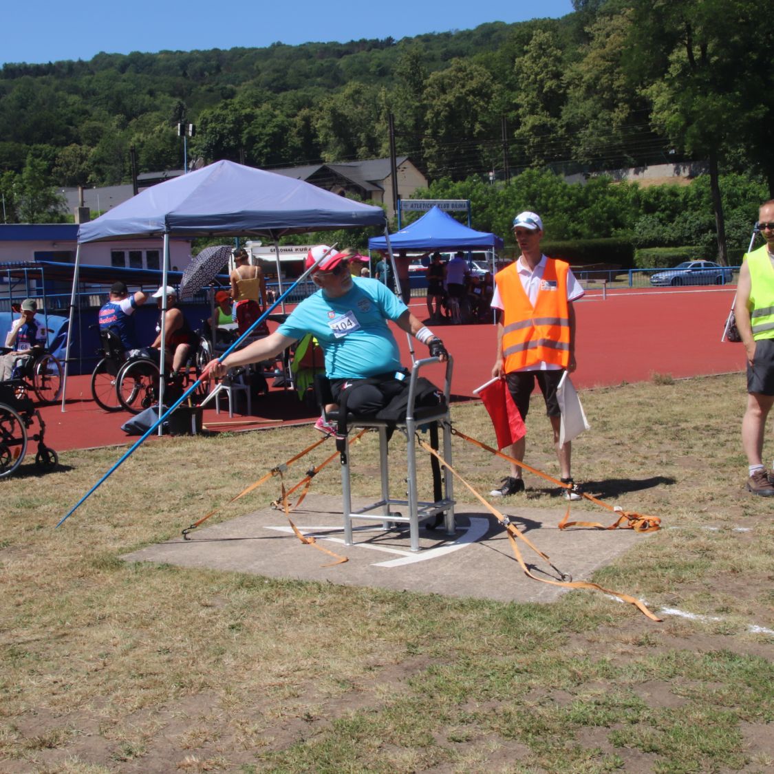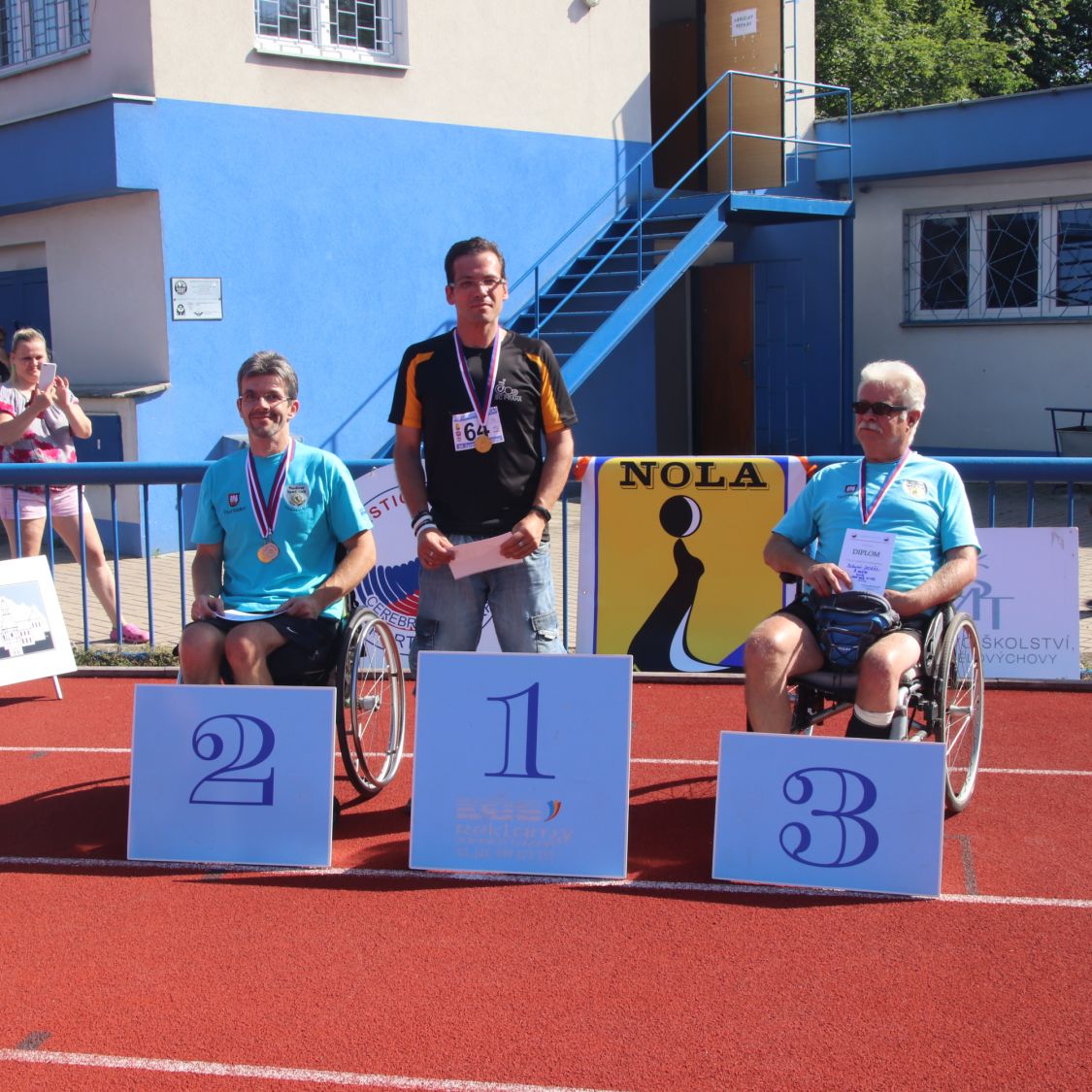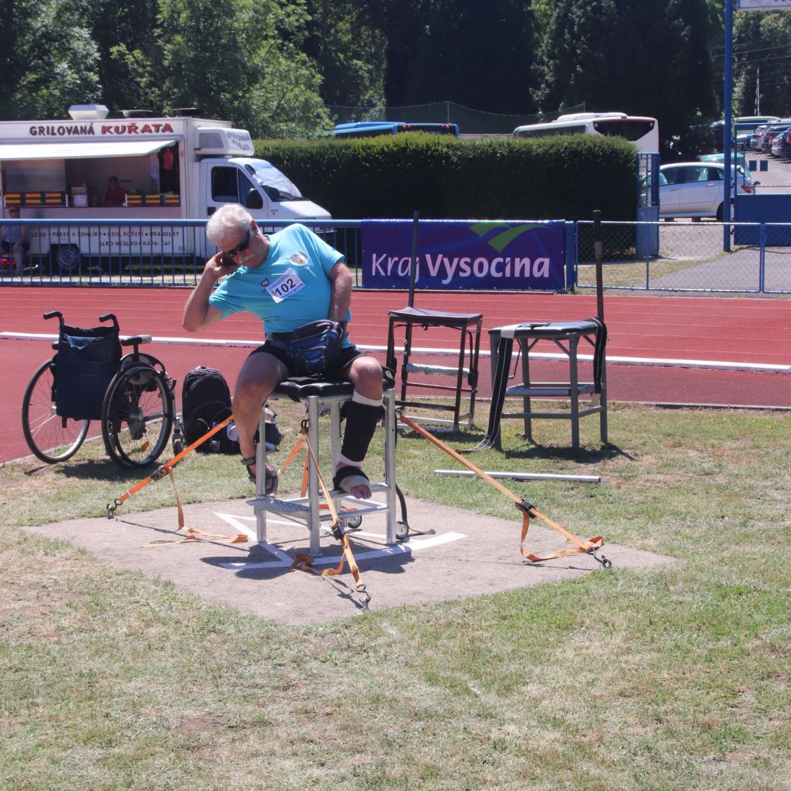 Za velmi teplého počasí vstoupili naši sportovci do technických disciplín v hodu oštěpem, dále následoval vrh koulí a poslední disciplína hod diskem. Nestárnoucí Jarda Polívka a Míra Dvořák předvedli své standartní výkony, Míra Dvořák si vybojoval 2. místo v hodu diskem a 3. místo ve vrhu koulí. Jarda Polívka díky vysoké třídě postižení si medaili z těchto závodů neodvezl. Překvapením byl Radek Coufal, který předvedl výkony z tréninku a ve všech disciplínách stanul na stupních vítězů. Největšího úspěchu dosáhl v hodu oštěpem, kdy porazil favorita z Brna a stal se v této disciplíně Mistrem České republiky Spastic Handicap pro rok 2019, 2. místo ve vrhu koulí a 3. místo v hodu diskem znamenalo pro Radka skvělou premiéru ve velkomeziříčském sportovním klubu. Na atletických disciplínách se výkony přepočítávají na body podle tříd postižení a podle bodu se zapisují výsledky.