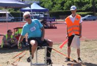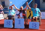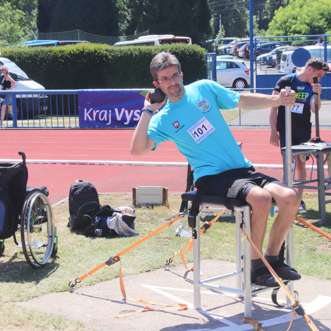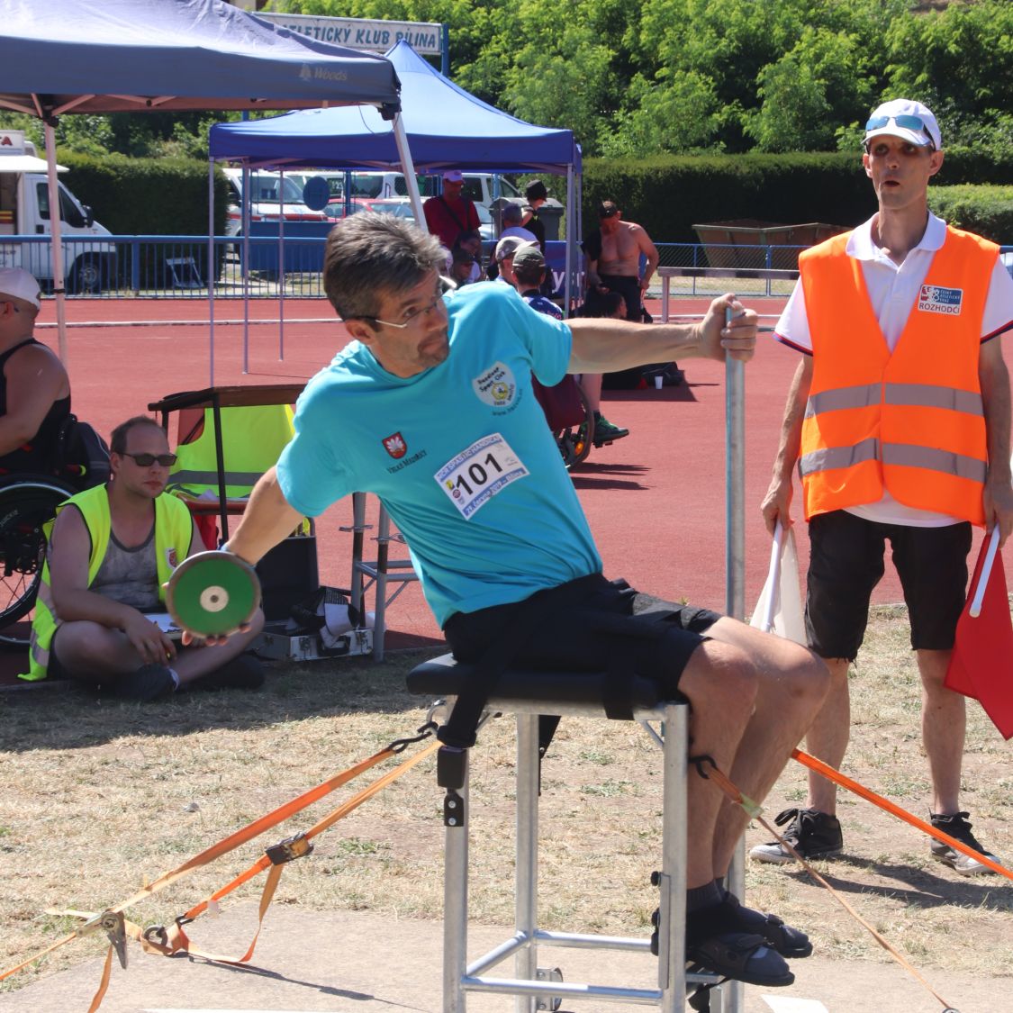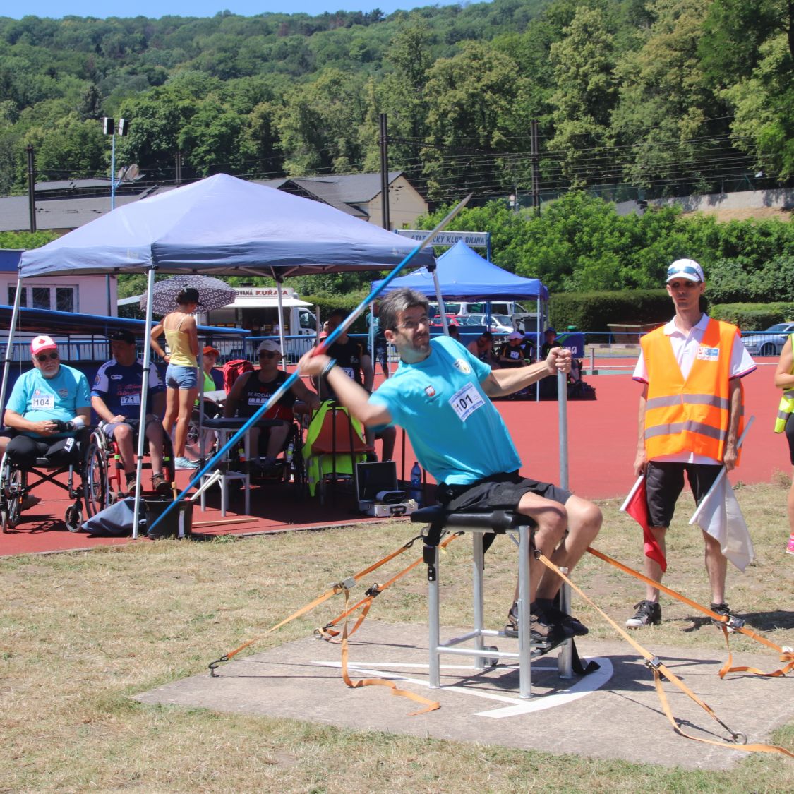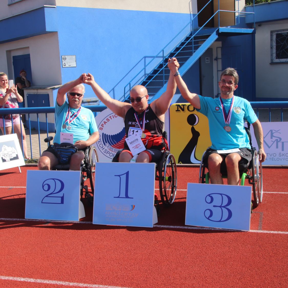 Za velmi teplého počasí vstoupili naši sportovci do technických disciplín v hodu oštěpem, dále následoval vrh koulí a poslední disciplína hod diskem. Nestárnoucí Jarda Polívka a Míra Dvořák předvedli své standartní výkony, Míra Dvořák si vybojoval 2. místo v hodu diskem a 3. místo ve vrhu koulí. Jarda Polívka díky vysoké třídě postižení si medaili z těchto závodů neodvezl. Překvapením byl Radek Coufal, který předvedl výkony z tréninku a ve všech disciplínách stanul na stupních vítězů. Největšího úspěchu dosáhl v hodu oštěpem, kdy porazil favorita z Brna a stal se v této disciplíně Mistrem České republiky Spastic Handicap pro rok 2019, 2. místo ve vrhu koulí a 3. místo v hodu diskem znamenalo pro Radka skvělou premiéru ve velkomeziříčském sportovním klubu. Na atletických disciplínách se výkony přepočítávají na body podle tříd postižení a podle bodu se zapisují výsledky.