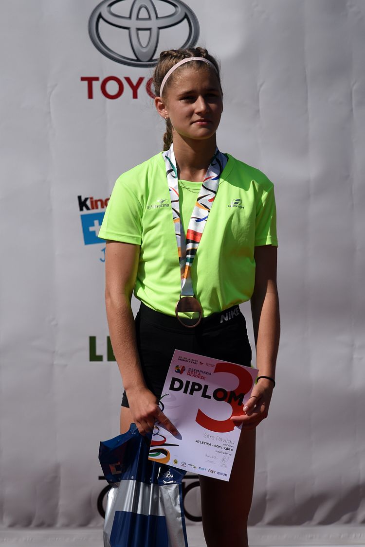Svoji druhou medaili z letní olympiády dětí a mládeže si přivezla sprinterka Sára Pavlidu. Před dvěma roky vybojovala bronzovou medaili v nejkratším sprintu na 60 m v kategorii mladších žákyň a stejnou hodnotu má i medaile z letošního ročníku již v kategorii starších žákyň.