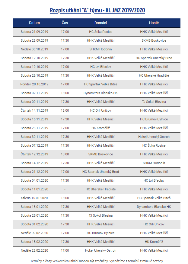 Sobota 21.09.2019 HC Štika Rosice – HHK Velké Meziříčí, začátek utkání v 17.00 hod.