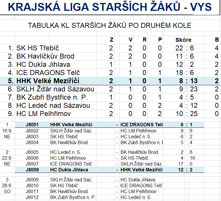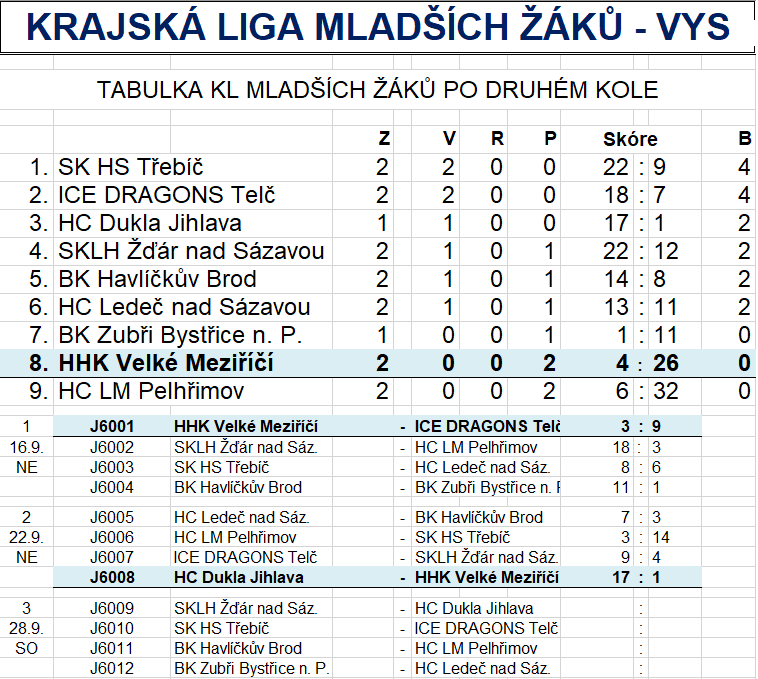 Sobota 28.09.2019 HHK VM 5. třídy – SKLH Žďár n. S., začátek utkání v 10:45 hod.