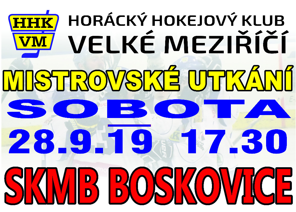 Sobota 28.09.2019 HHK Velké Meziříčí – SKMB Boskovice, začátek utkání v 17.30 hod.