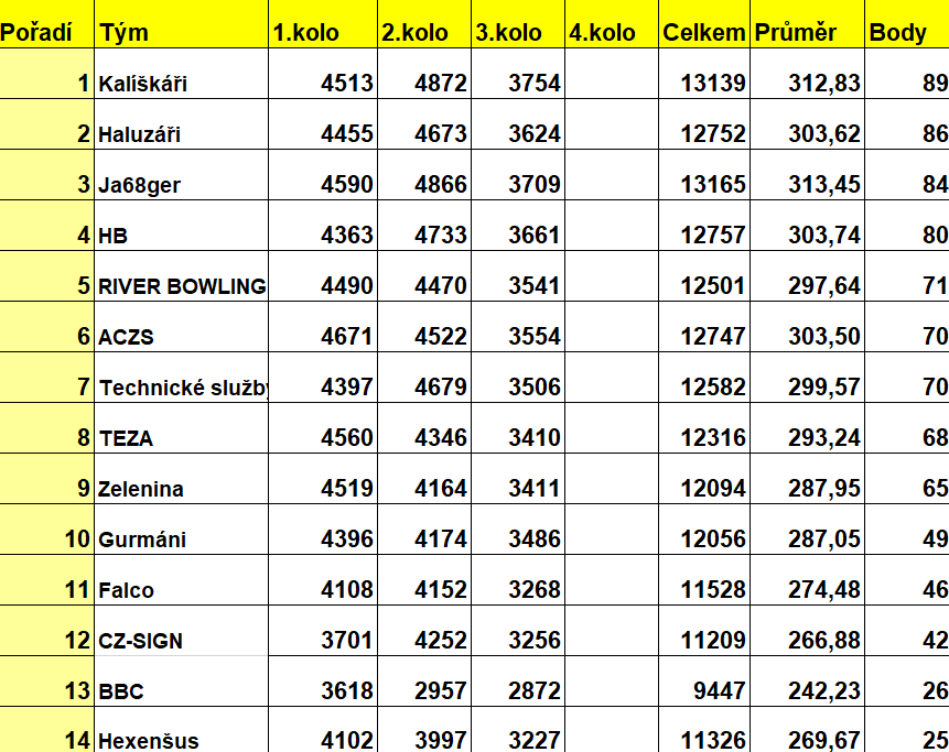 Hráči bowlingu odehráli třetí hrací den třetího kola