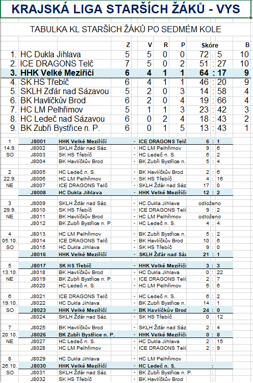 Sobota 26.10.2019 HHK VM starší žáci – HC Ledeč n. S., začátek utkání 11:45 hod.
