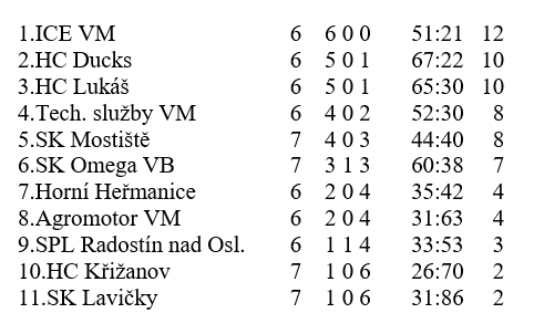 SK Mostiště – HC Lukáš 6 : 7