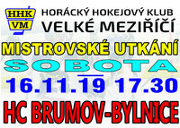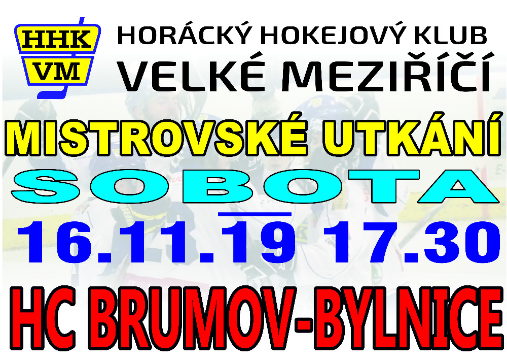 Sobota 16.11.2019 HHK Velké Meziříčí – HC Brumov-Bylnice, začátek utkání v 17.30