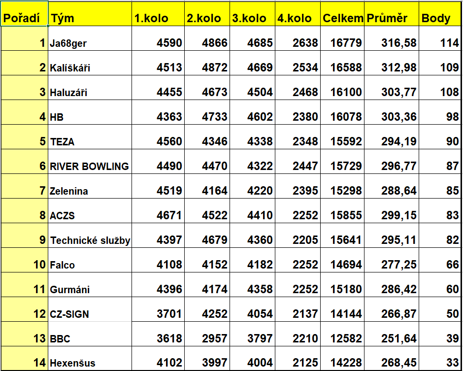 Hráči bowlingu odehráli druhý hrací den čtvrtého kola