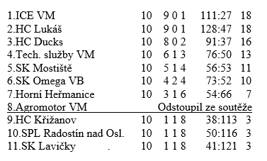 Necid, Smažil, Bartušek, Kopřiva – Rašner 3, Novák 3, Vondráček Petr 2, Uchytil