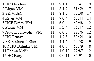Po základní části se tabulka rozdělila na 3 skupiny. Mužstva se utkají dvoukolově o vítěze městské ligy, o postup do extraligy a vítězství v 1. lize.