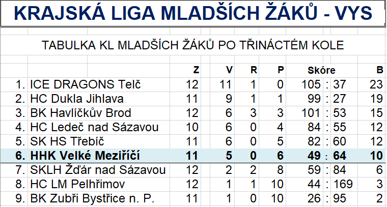 Sobota 07.12.2019 HHK VM mladší žáci – SK HS Třebíč, začátek utkání v 9:45 hod.