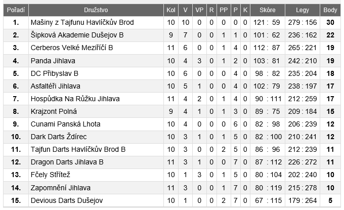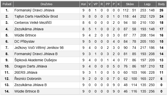 Oba týmy šipkařů se drží v průběžném pořadí na třetím místě