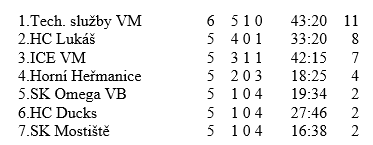Městská hokejová liga odehrála 6. kolo nadstavbové části.