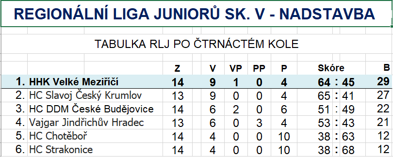 Junioři HHK vyhráli v Chotěboři a posunuli se do čela regionální ligy
