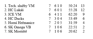 Městská hokejová liga Velké Meziříčí odehrála sedmé kolo z nadstavbové části.