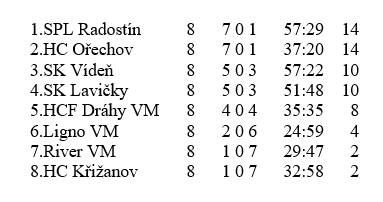 Městská hokejová liga odehrála 8. kolo nadstavbové části.