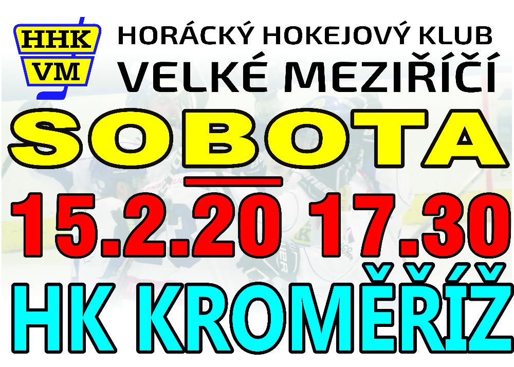 Sobota 15. 02. 2020 HHK Velké Meziříčí – HK Kroměříž, začátek utkání v 17:30 hod. (zimní stadion – Velké Meziříčí)