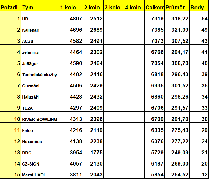 Hráči bowlingu odehráli druhý hrací den druhého kola