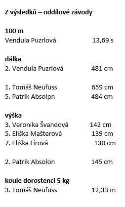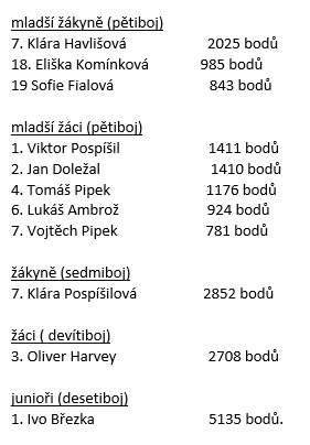 V rámci oddílových závodů se Tomáš Neufuss osobním výkonem 659 cm dostal na 5. místo průběžných republikových tabulek.