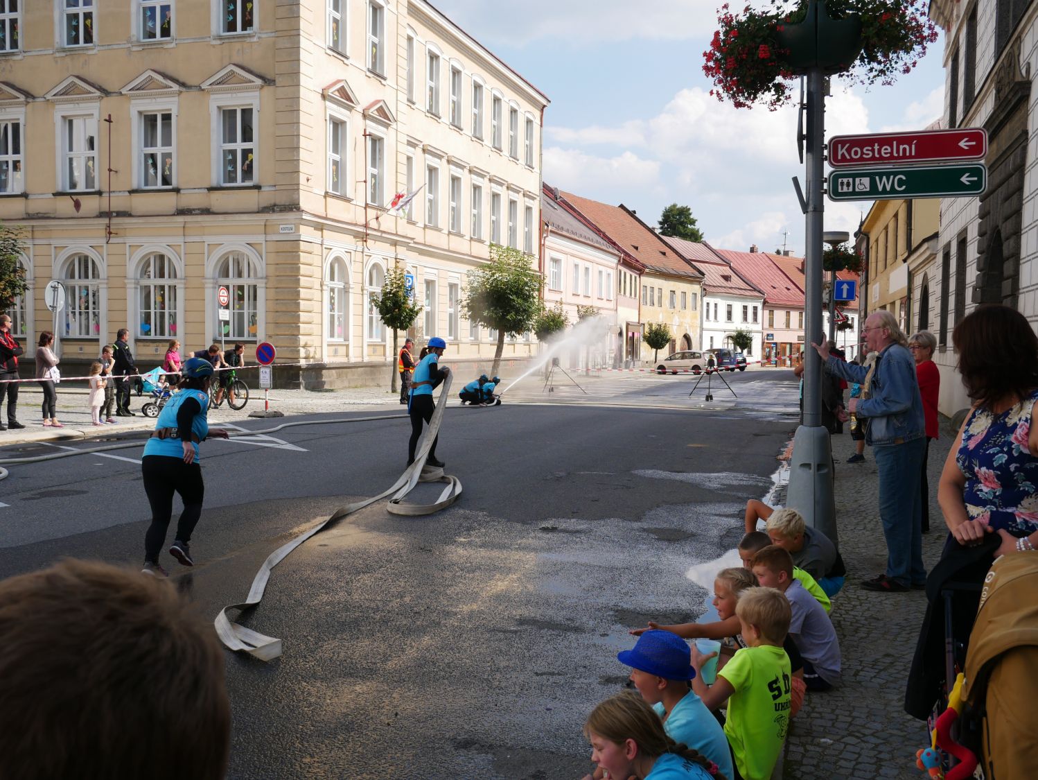 V neděli 5. září se na Náměstí a v ulici Komenského uskutečnila velká podívaná pro dospělé i děti. V rámci 6. ročníku Memoriálu zasloužilých funkcionářů zde závodily hasičské týmy v požárním útoku s vodou podle cvičebního řádu. Přítomní tak mohli spatřit vázání lanek, sání vody z nádrže a rozhazování hadic.