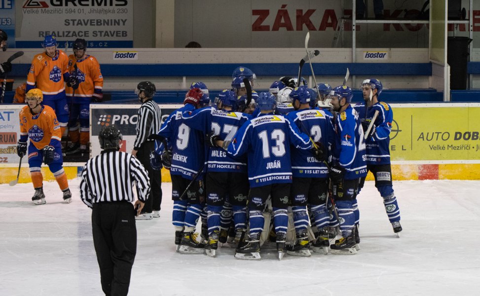 Velkomeziříčští hokejisté zvítězili nad hodonínskými Drtiči po samostatných nájezdech