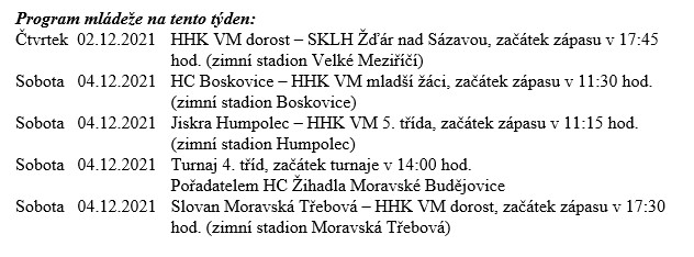 BK Zubři Bystřice nad Pernštejnem – HHK Velké Meziříčí 2:7 (1:3, 0:0, 1:4)