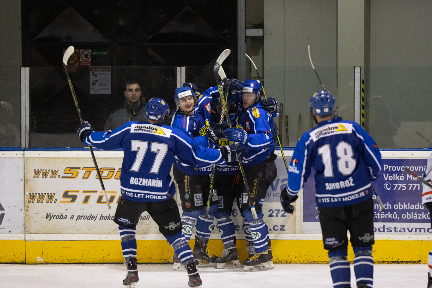 Velkomeziříčští hokejisté odehráli nejlepší utkání sezóny. Na domácím ledě si vyšlápli na lídra soutěže, od úvodu zápasu byli aktivnější a především v koncovce jasně lepší. O branky Velkého Meziříčí se postaraly všechny formace a domácí postupně navyšovali vedení až na konečných 11:0!