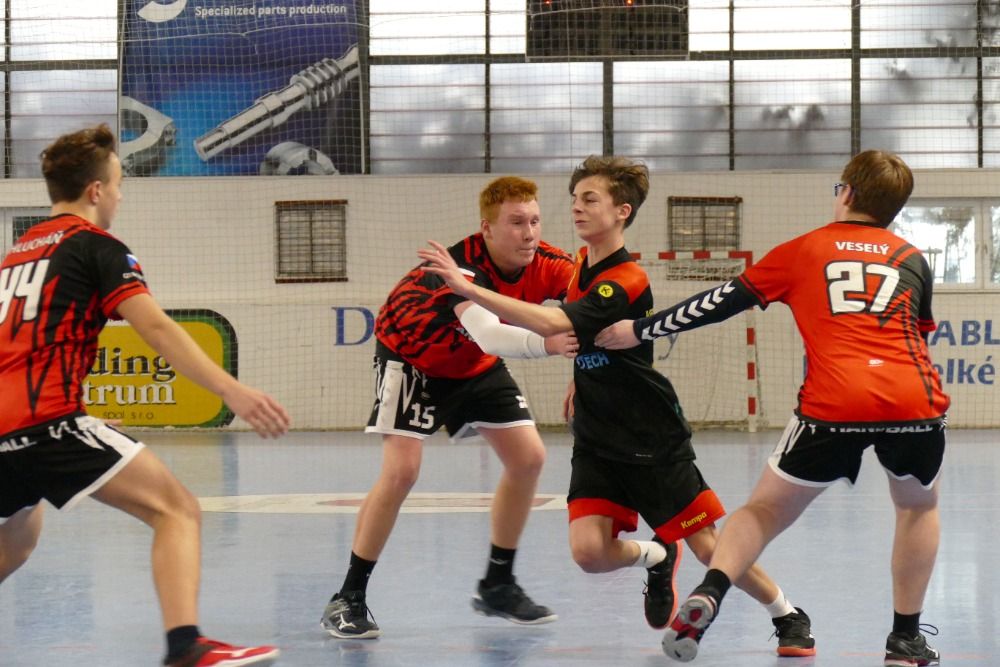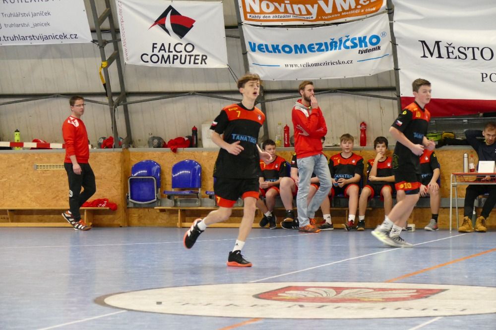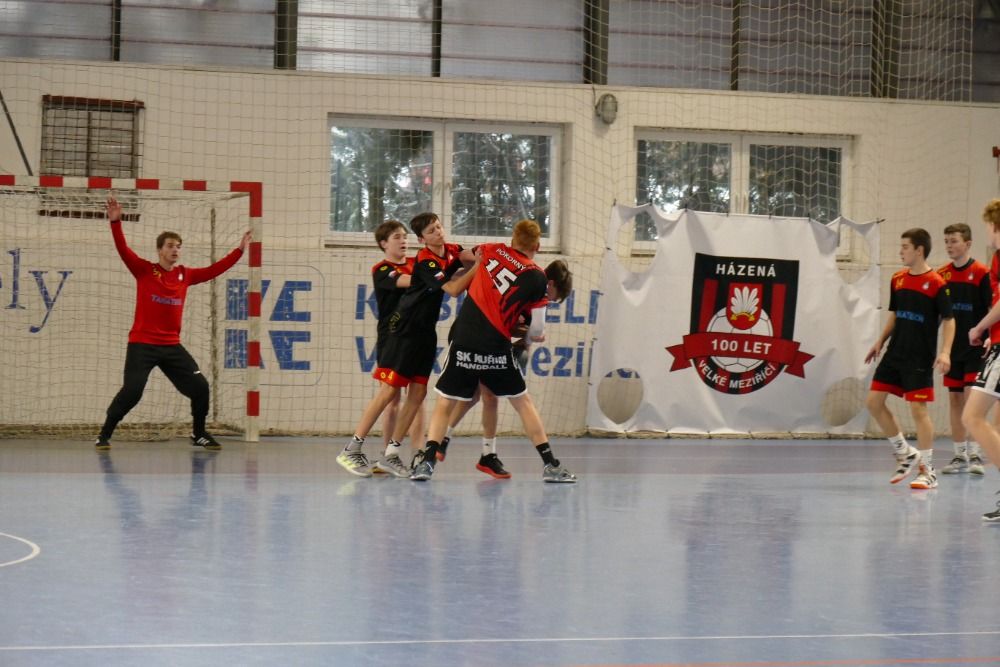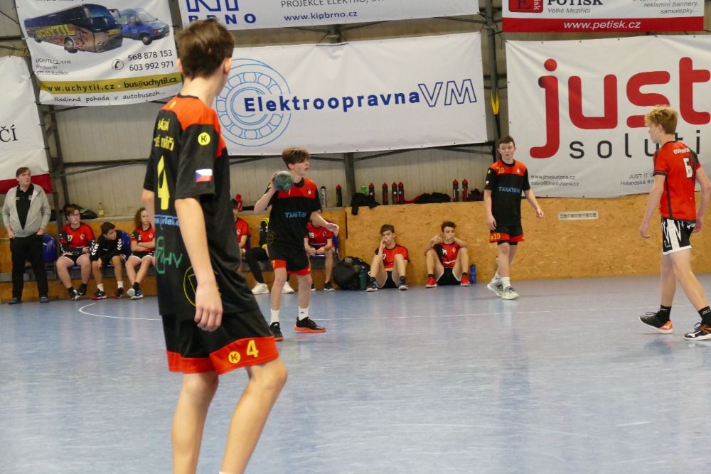 V druhém zápase se nám postavil tým z Kuřimi. I když měl soupeř výškovou i váhovou převahu, tak se toho naši kluci nezalekli. Výborně plnili taktické pokyny, hned od začátku jsme si budovali náskok, který byl místy až desetigólový. Ke konci zápasu nám už docházely síly, ale utkání jsme i tak dovedli do vítězného konce 21:18 a lišácky jsme tak zastavili kuřimskou mašinu.