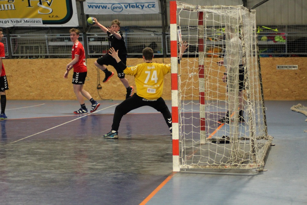 Naši dorostenci sice byli ti, kteří vsítili první branku, ale postupem času si soupeř vytvářel tři až čtyřbrankový náskok. Naše útočné snahy končily na brankáři hostů a na druhou stranu obrana nebyla moc kompaktní. V poslední desetiminutovce prvního poločasu se dorostenci přiblížili na jednu branku, ale vyloučení nám zabránilo skóre vyrovnat. Poločas tak skončil tříbrankovým rozdílem 11:14.