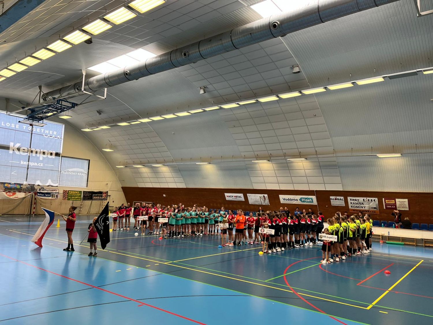 V pátek 3. června byl turnaj odstartován slavnostním nástupem za přítomnosti všech družstev, rozhodčích a zástupce Komise mládeže Petra Ramse. Holky si dokonce poprvé vyslechly během nástupu i českou hymnu. Po slavnostním okamžiku přišla na řadu první disciplína – Hod házenkářským míčem, na který následoval odraz snožmo. Páteční den jsme zakončily utkání proti Sokolu Poruba, které bylo hodně vyrovnané.