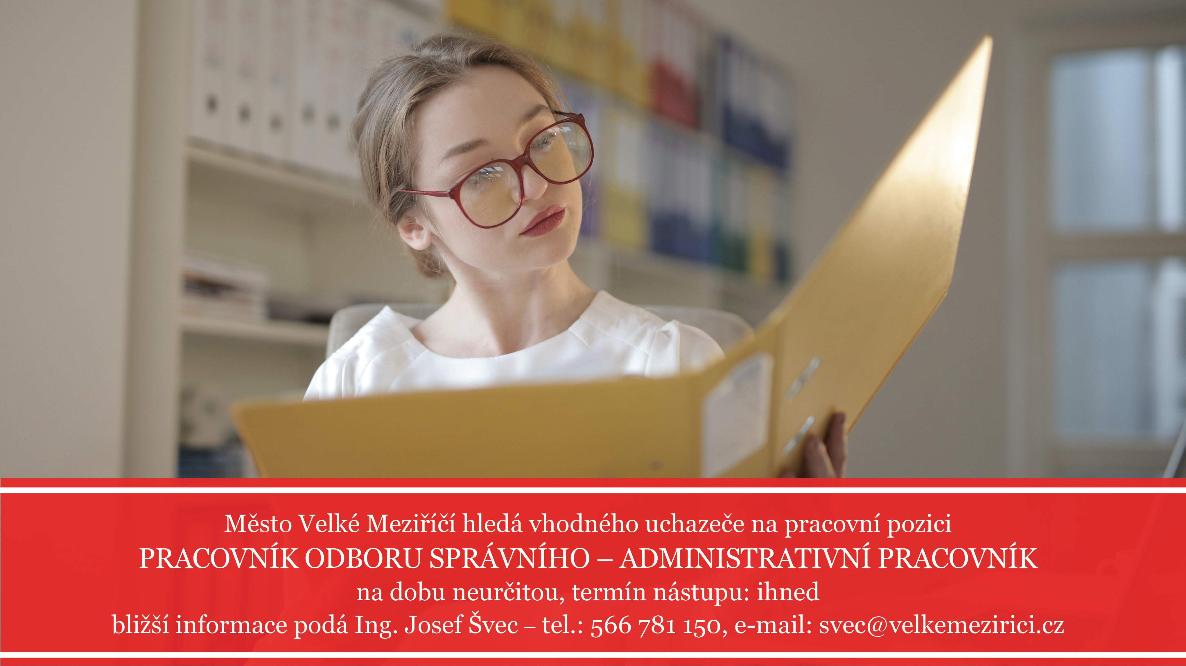 Tajemník Městského úřadu Velké Meziříčí vyhlašuje výběrové řízení na pozici administrativní pracovník – pracovník odboru správního.