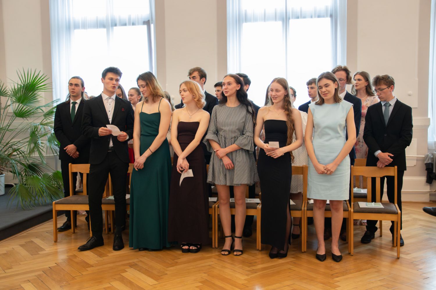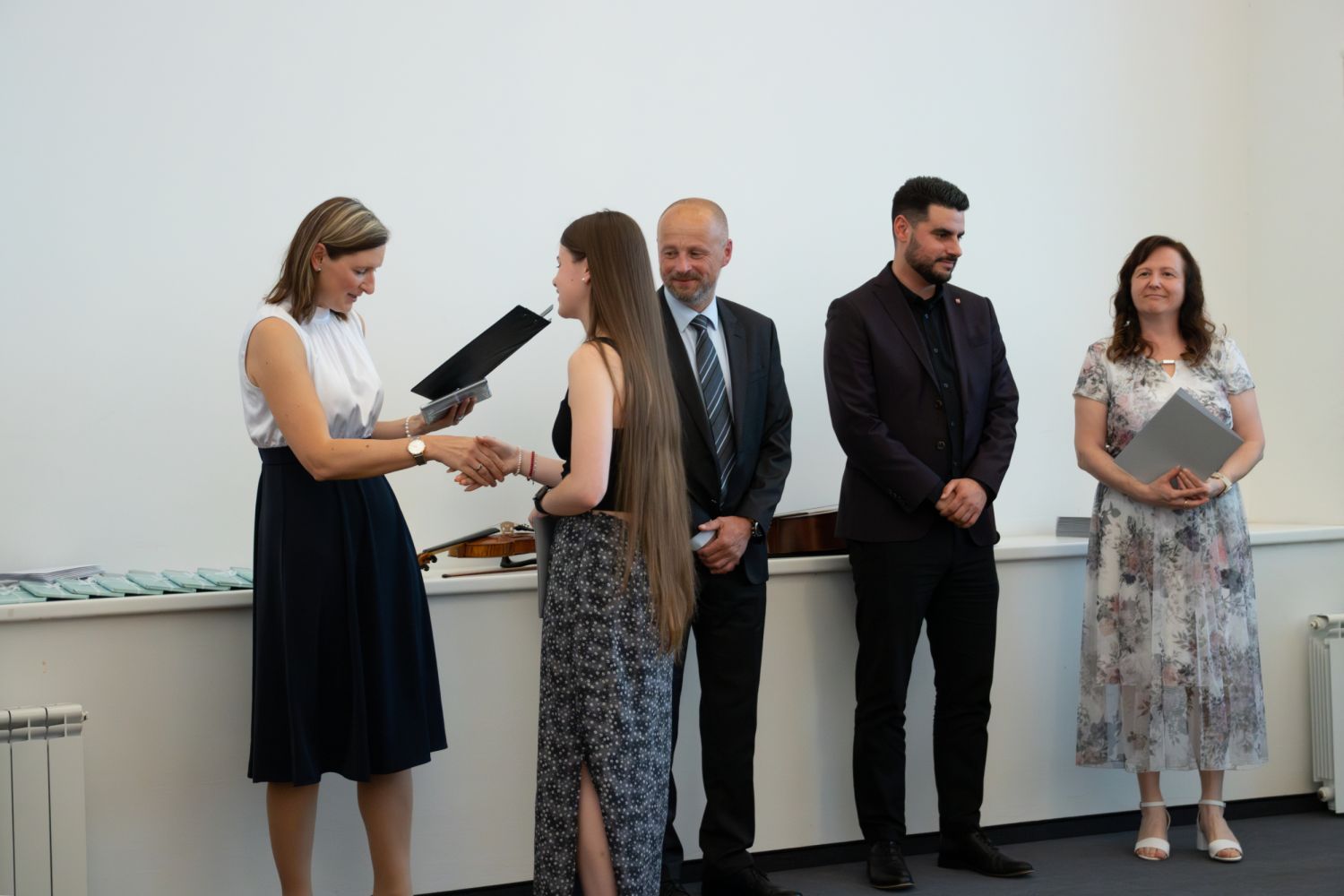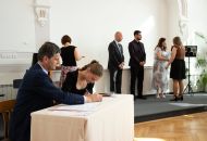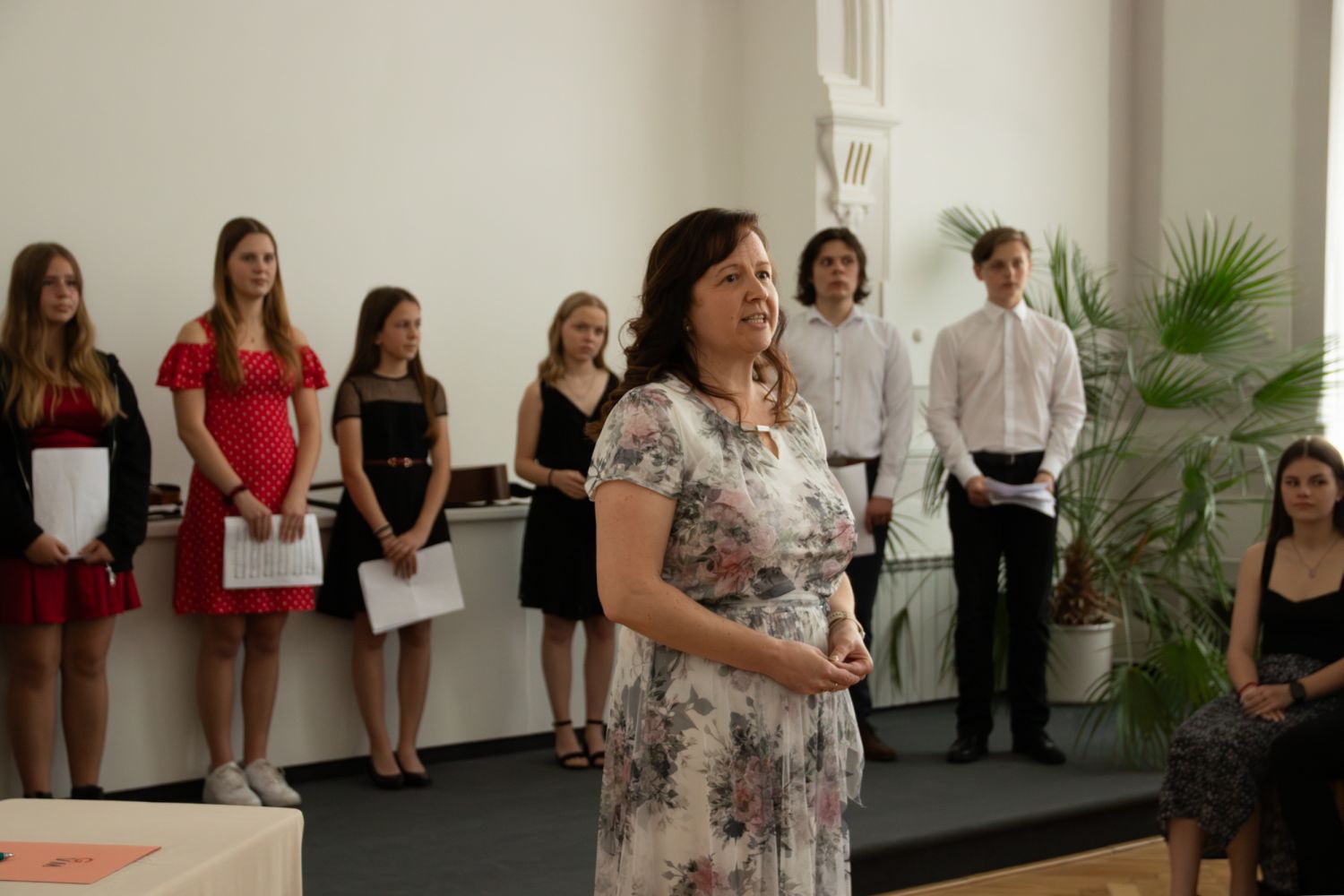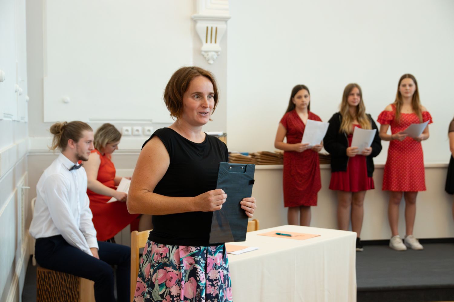 Na akci promluvily třídní učitelky 8. A Dita Massey a 4. C Eva Pospíšilová. Dále studentů popřála hodně štěstí do budoucího profesního i soukromého života ředitelka Ilona Pokorná. Pár slov chvály, přání i krátké zavzpomínání přinesl bývalý student gymnázia a starosta města Alexandros Kaminaras. Mimo vysvědčení dostali někteří i prospěchové stipendium za skvělé studijní výsledky.