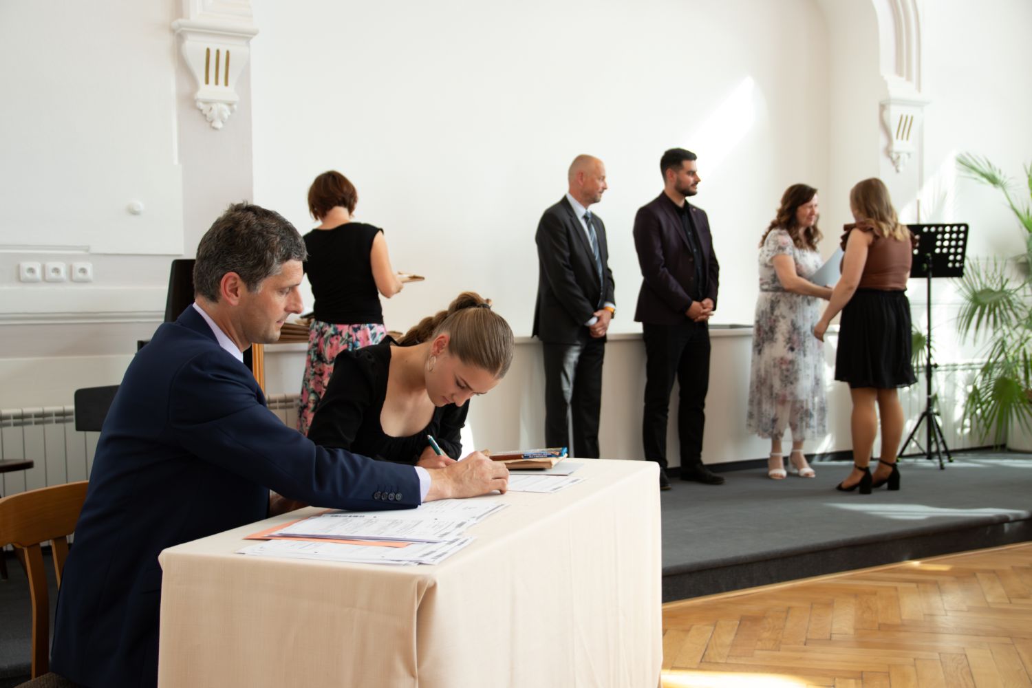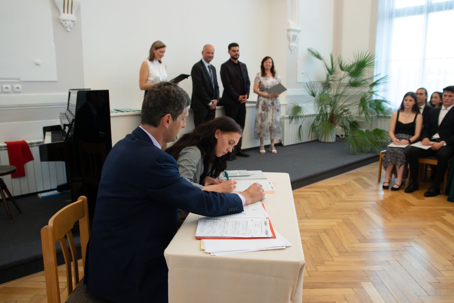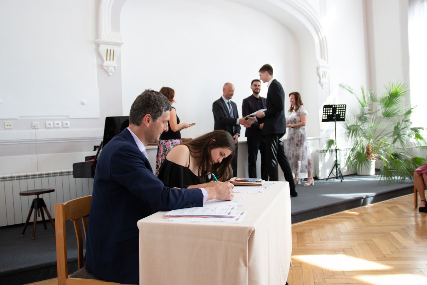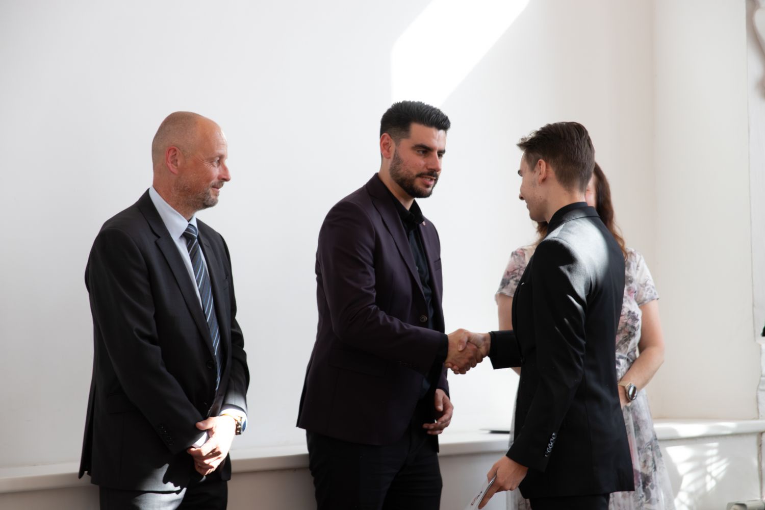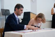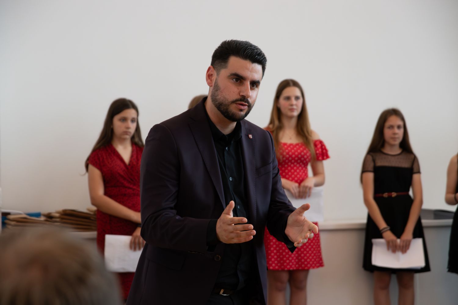 Na akci promluvily třídní učitelky 8. A Dita Massey a 4. C Eva Pospíšilová. Dále studentů popřála hodně štěstí do budoucího profesního i soukromého života ředitelka Ilona Pokorná. Pár slov chvály, přání i krátké zavzpomínání přinesl bývalý student gymnázia a starosta města Alexandros Kaminaras. Mimo vysvědčení dostali někteří i prospěchové stipendium za skvělé studijní výsledky.