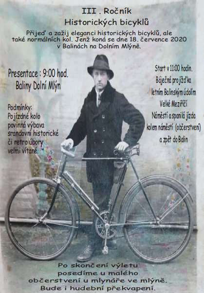 Milovníci a nadšenci historických bicyklů se sejdou 18. července 2020 v Balinách. Dolní mlýn bude hostit sraz retro kol. Jedná se již o třetí ročník a pořadatelé lákají na mnohé libůstky.
