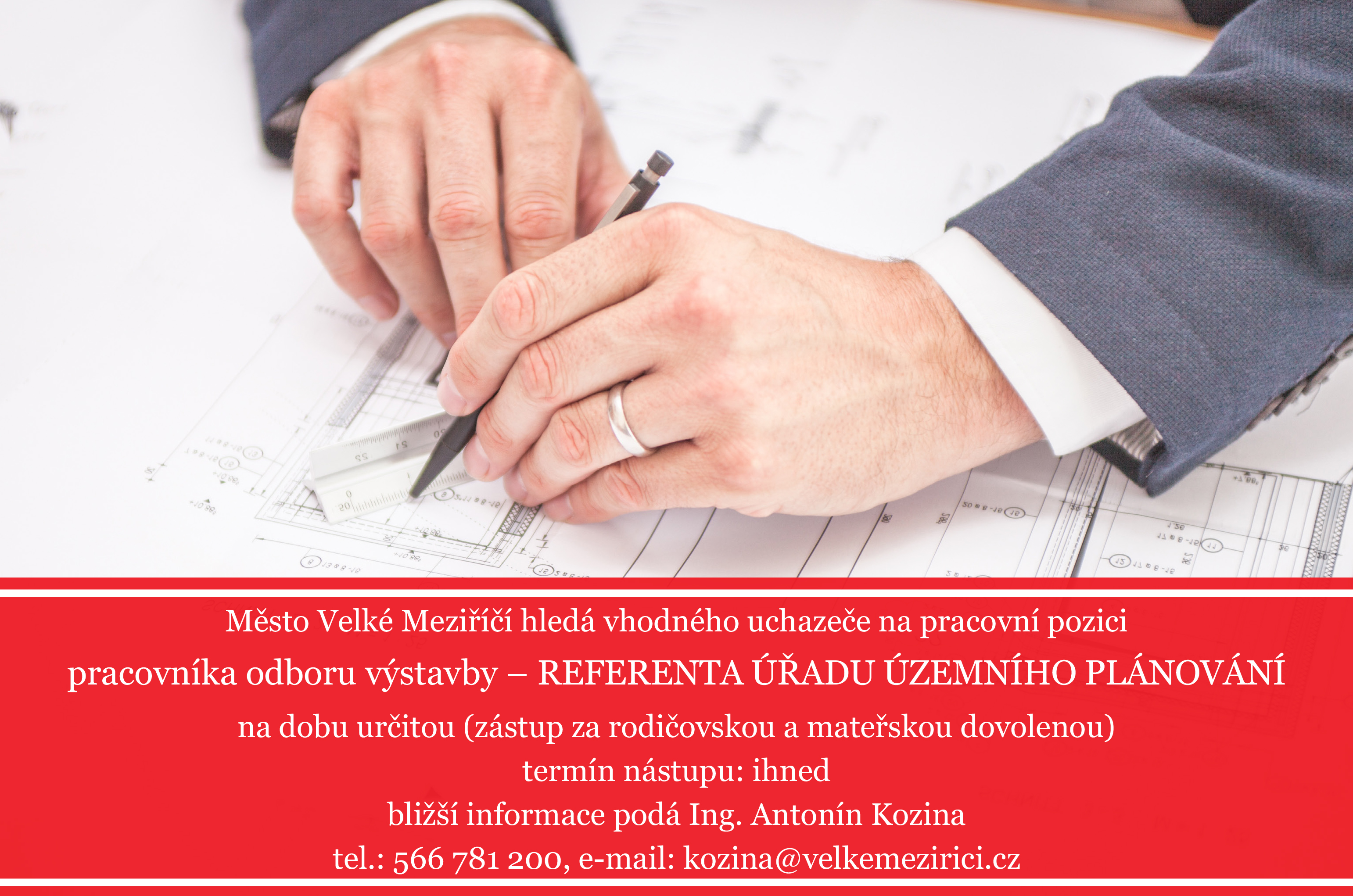 Tajemník Městského úřadu Velké Meziříčí vyhlašuje výběrové řízení na pracovníka odboru výstavby – referenta úřadu územního plánování.