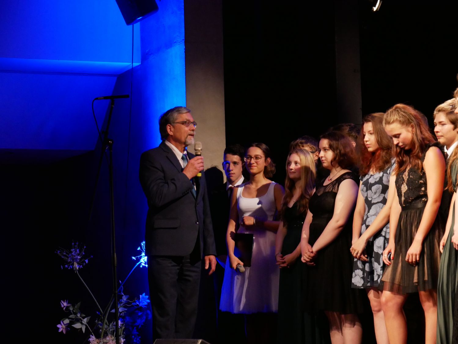 Úvodního slova se ujal ředitel školy Petr Blažek, který všem přítomným popřál hezký den, poděkoval žákům i učitelům a předal slovo představitelům města ve složení starosty města Alexandrose Kaminarase a místostarosty města Františka Smažila. Ti studentům popřáli příjemně strávené prázdniny, úspěch při nástupu na střední školu a štěstí v životě.