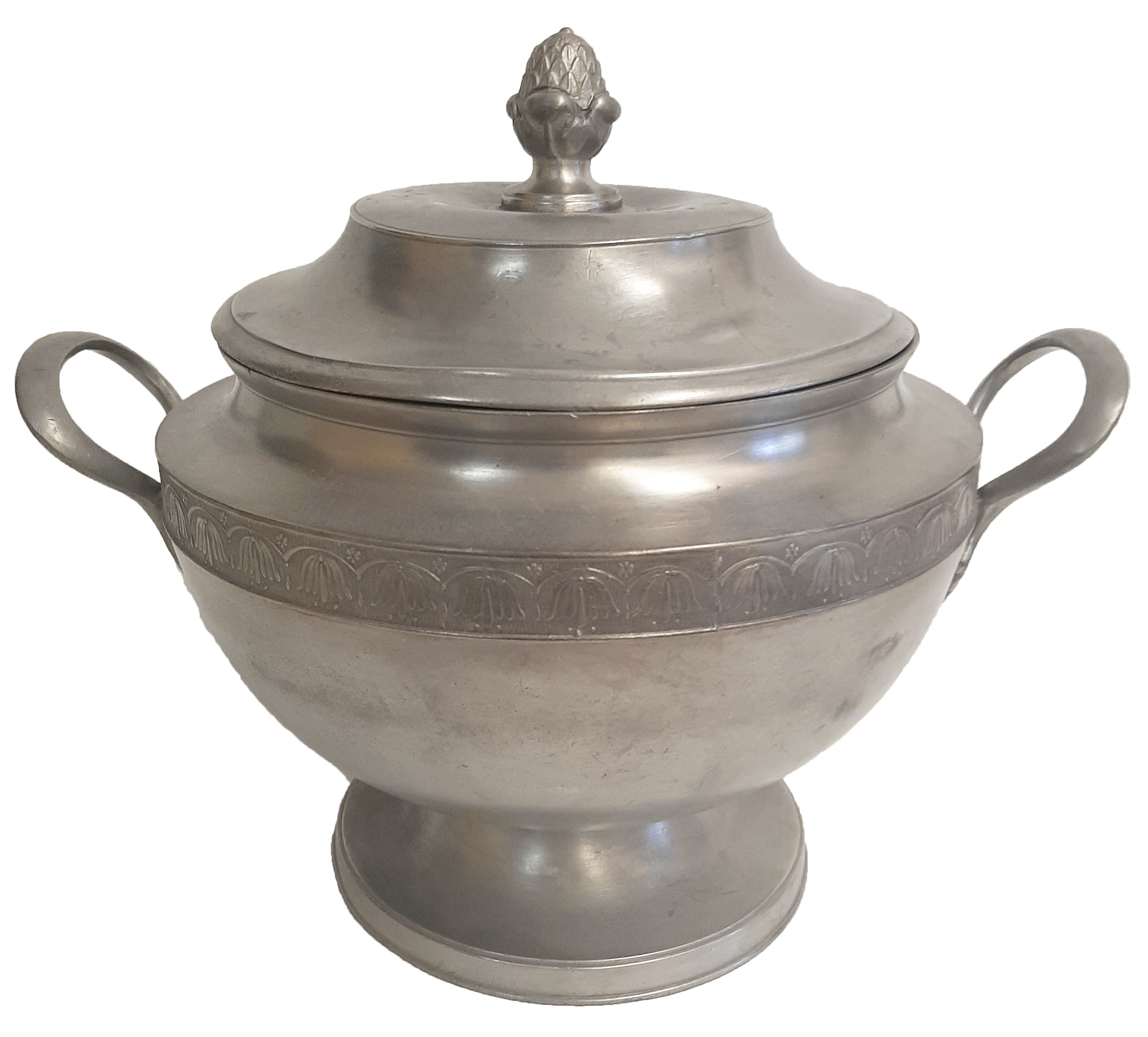 Zpracování cínu bylo postupně poznamenáno technickým pokrokem a průmyslovou revolucí, kdy začaly vznikat slitiny cínu. Jedním z těchto materiálů byl kov zvaný Britannia, který byl tvořen 90 procenty cínu a 10 procenty antimonu se stopami mědi. Na přelomu 18. a 19. století začaly vznikat firmy zabývající se zpracováním Britanniametalu, k nejznámějším patřila továrna založená roku 1804 Jamesem Dixonem v Sheffieldu. Značka dílny bývala umístěna na spodní straně předmětů, dost často také s číslem modelu. Z této britské produkce máme ve sbírkách například mešní konvičky, přičemž u jedné z nich víme, že se do muzea dostala darem v roce 1928 z jedné meziříčské domácnosti.
