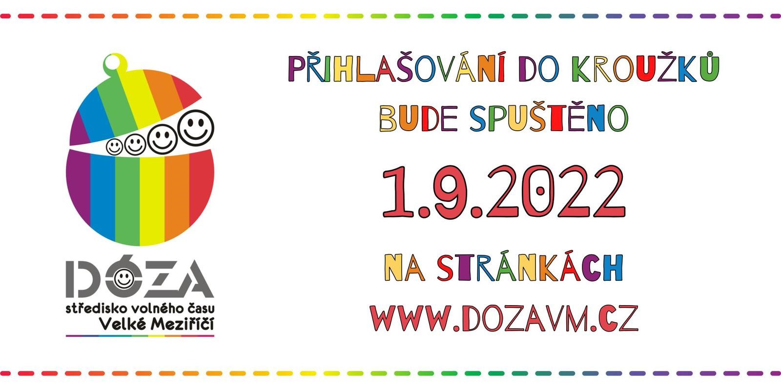 V noci ze středy na čtvrtek, se spouští registrace do volnočasových kroužků na stránkách Dózy. Před přihlášením však, prosím, zkontrolujte přihlašovací údaje dětí na klientském účtu. Jedná se obzvláště o adresu trvalého bydliště, název školy, údaje zdravotní pojišťovny a kontakty na zákonné zástupce. Kapacita kroužků je omezená.