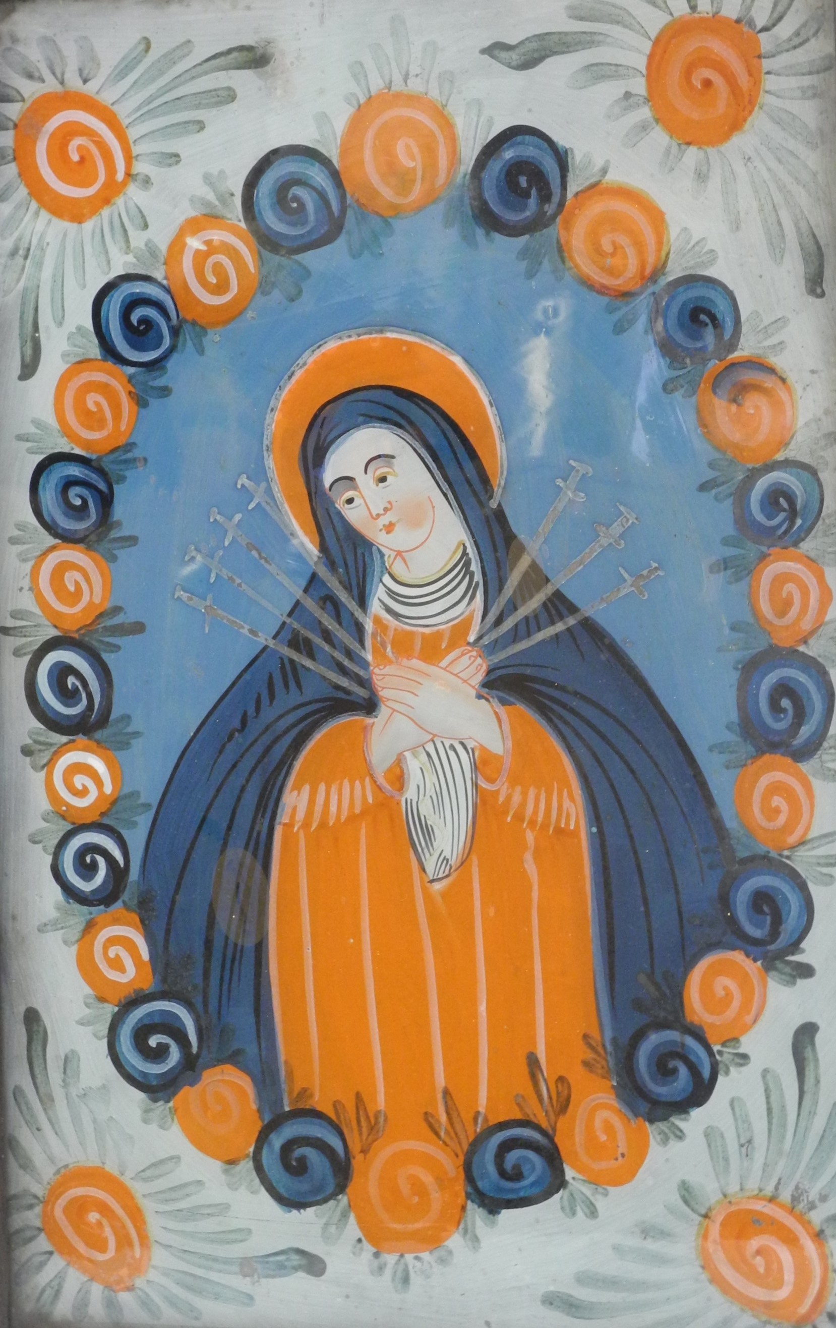 V depozitáři je uložen také soubor zhruba šesti desítek lidových obrázků na skle z 19. století se zpodobněním jednotlivých světců. Tyto obrázky malované na rubu skleněné tabulky byly oblíbené nejen pro svoji barevnost, ale především kvůli jejich křesťanské tematice. Nalezneme mezi nimi například svatého Martina na koni, svatého Jiřího bojujícího proti drakovi či svatou Barboru s kalichem, který připomíná její obrácení na víru. Většina z nich byla do přírůstkové knihy zapsána v roce 1940, ale do muzea se dostaly již v předchozích letech. Obrázek Božího hrobu daroval vznikajícímu muzeu pan Maršálek již v roce 1893. Naopak k těm „nejnovějším" patří přírůstky z roku 1956, které muzeu daroval prof. Josef Vlček.