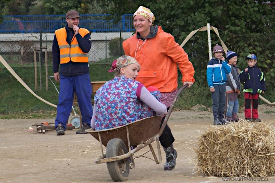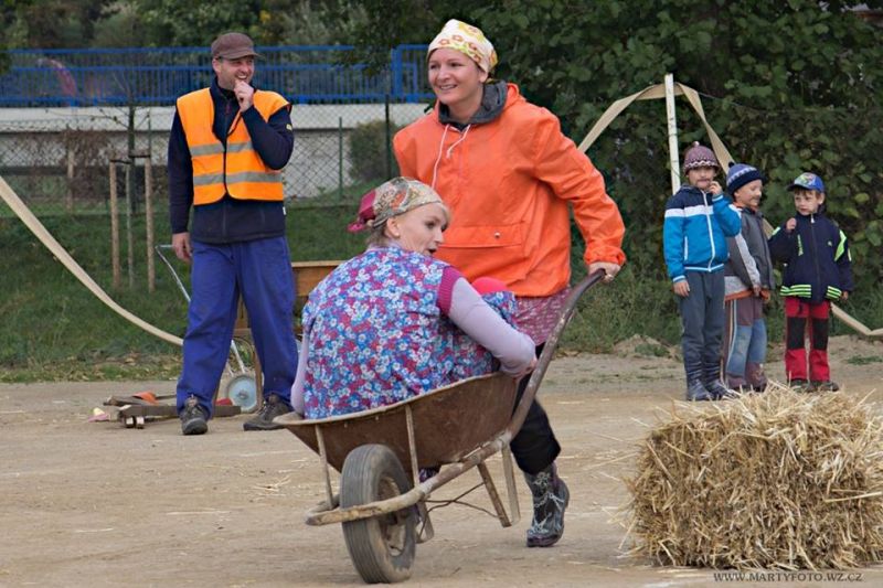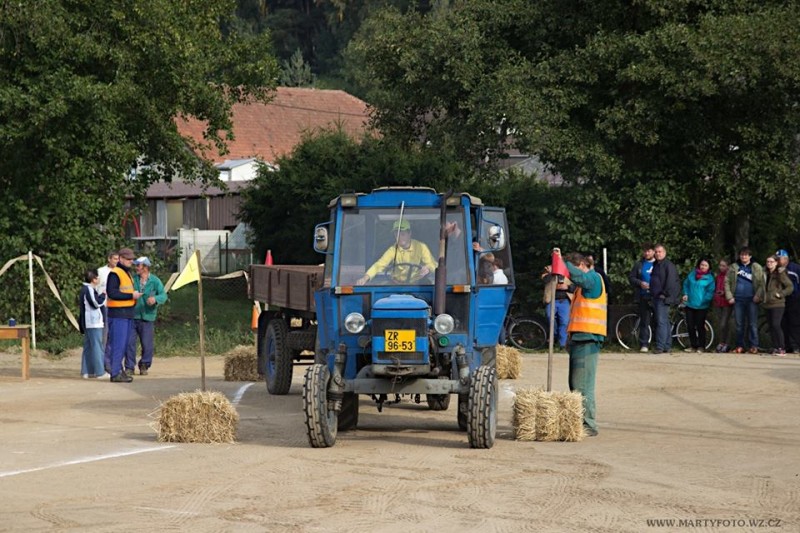 Našlo se třináct odvážlivců – traktoristů, kteří předvedli své umění v jízdě v traktoru vpřed ale hlavně při couvání s vlečkou. Dráha byla těžká ale ukázalo se, že to jsou opravdu zkušení traktoristé a jízdu zvládli skvěle. Pak proběhl slalom žen proti mužům v jízdě na kotouči v holínkách. Myslím, že u této disciplíny se opravdu všichni pobavili.