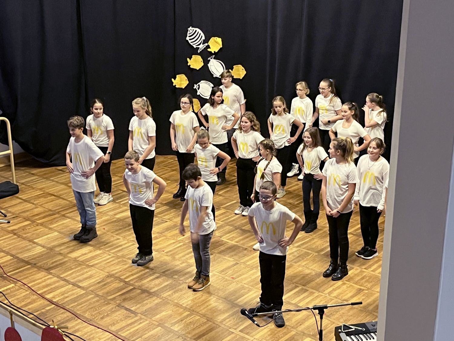 Do rytmu jsme si nohou poklepávali díky 3. A, kteří tančili na písně z Pomády, a i žákům z kytarového kroužku. Diváci tajili dech při vystoupení 3. B, kdy své žáky podpořil i pan učitel, který předvedl skvělé akrobatické číslo.