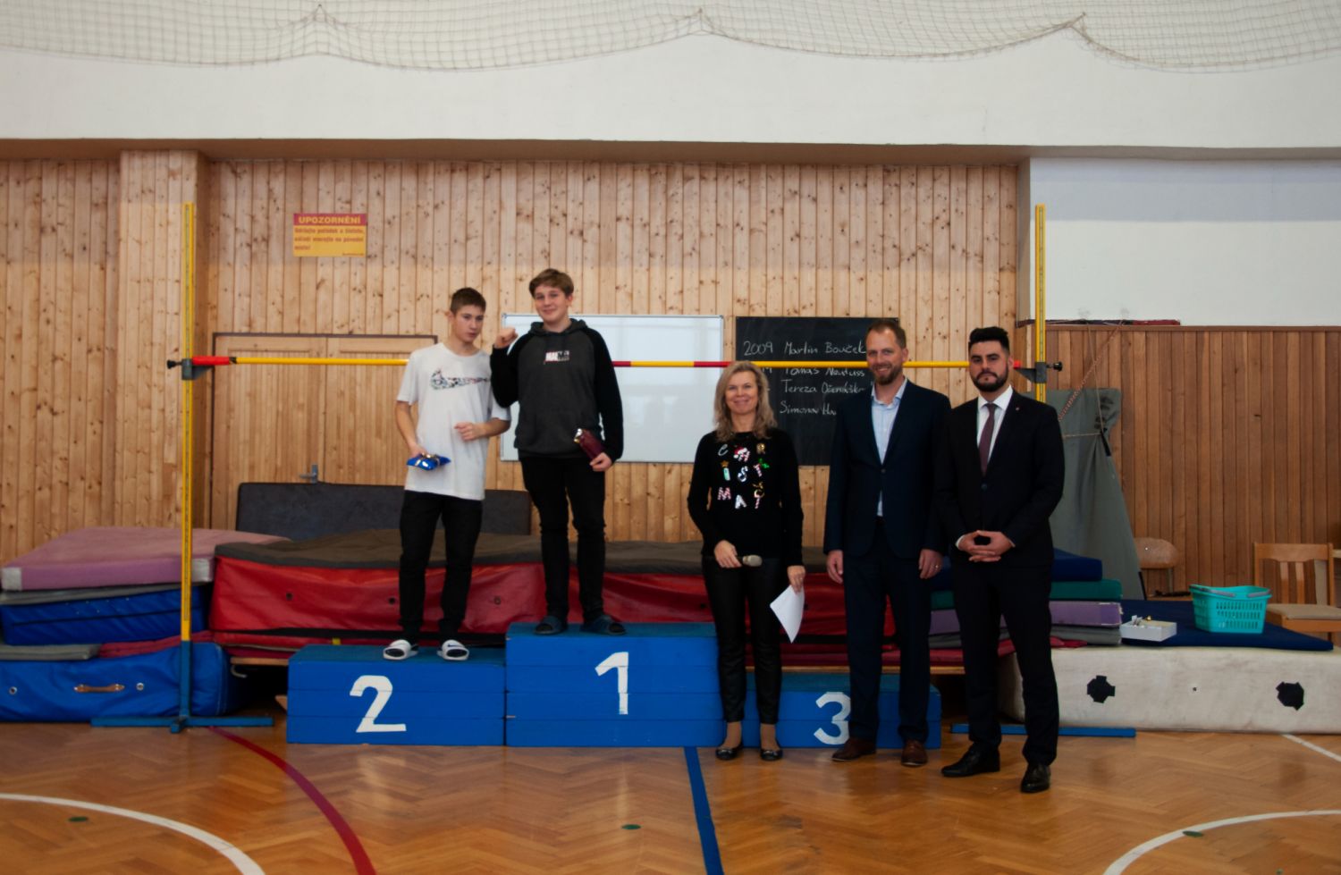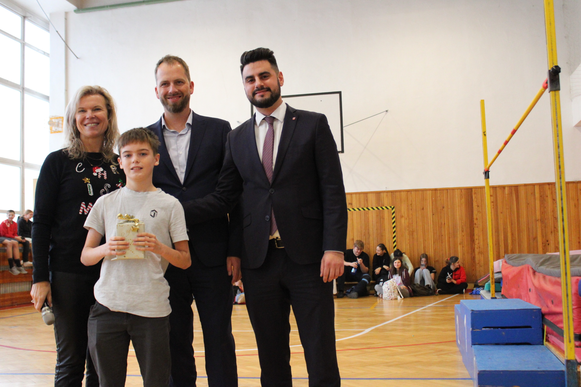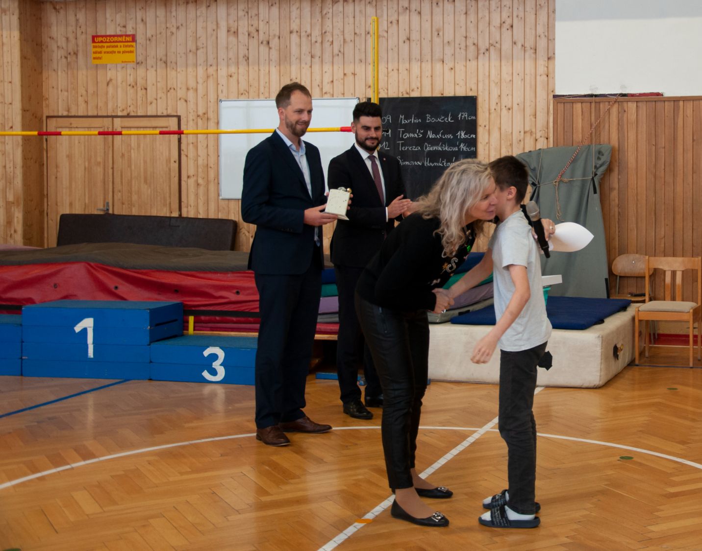 Předání cen se, v rámci tradiční akce Vánnoční laťka 2022, zhostila ředitelka školy Mgr. Eva Bednářová společně se starostou Ing. arch. Alexandrosem Kaminarasem a místostarostou Martinem Kamanem.