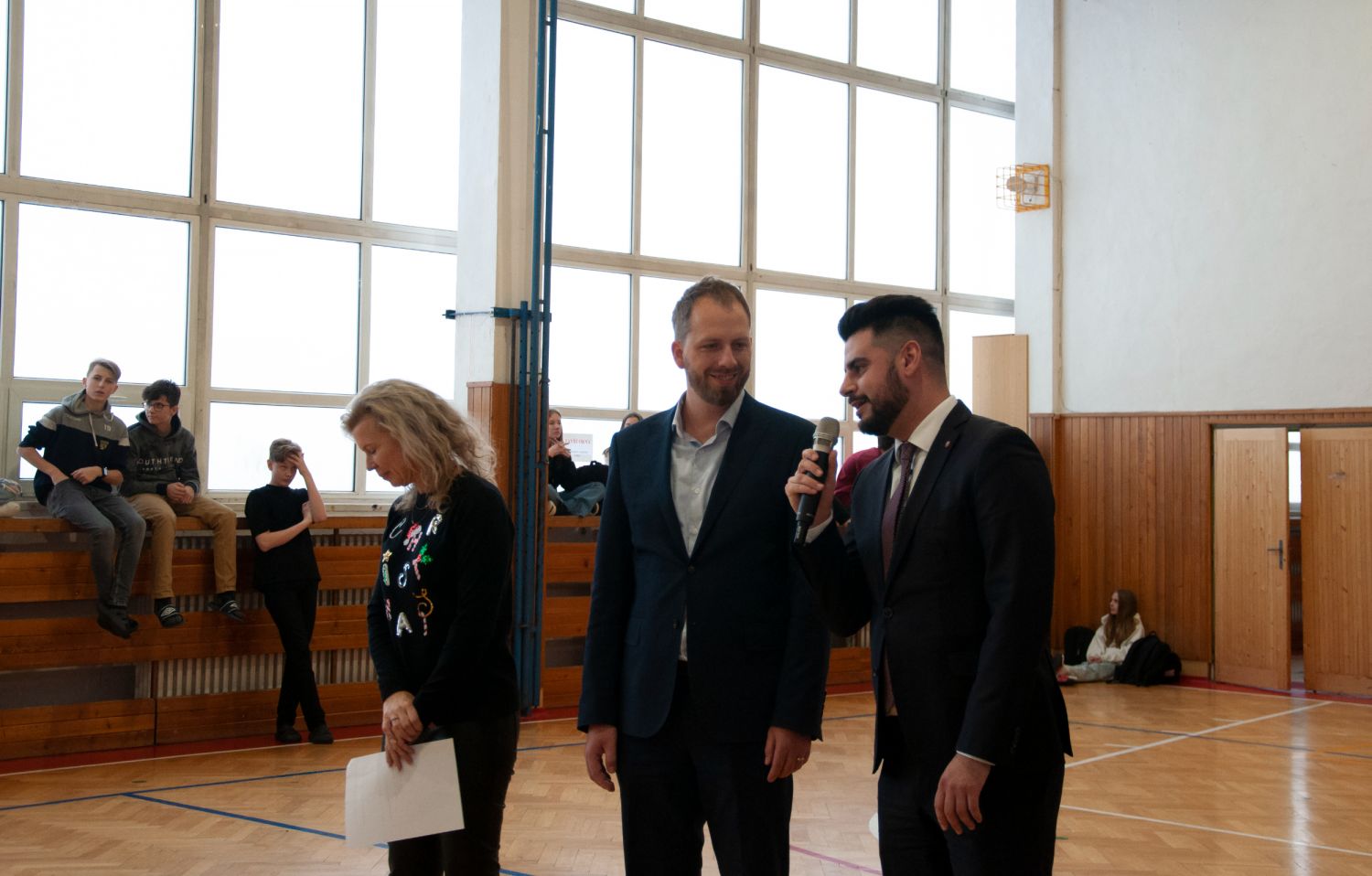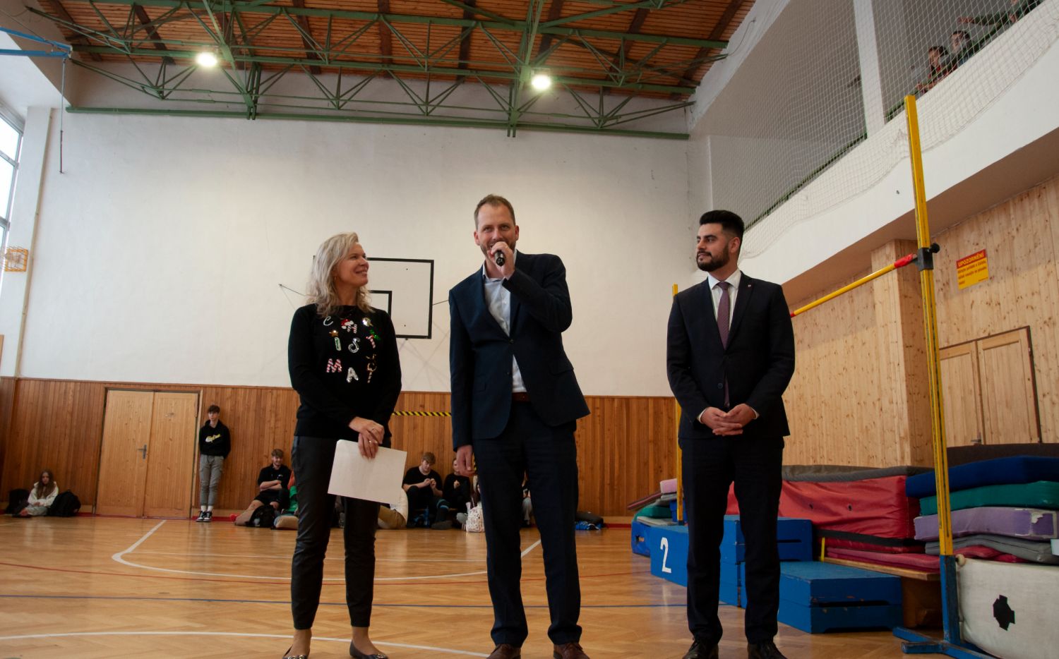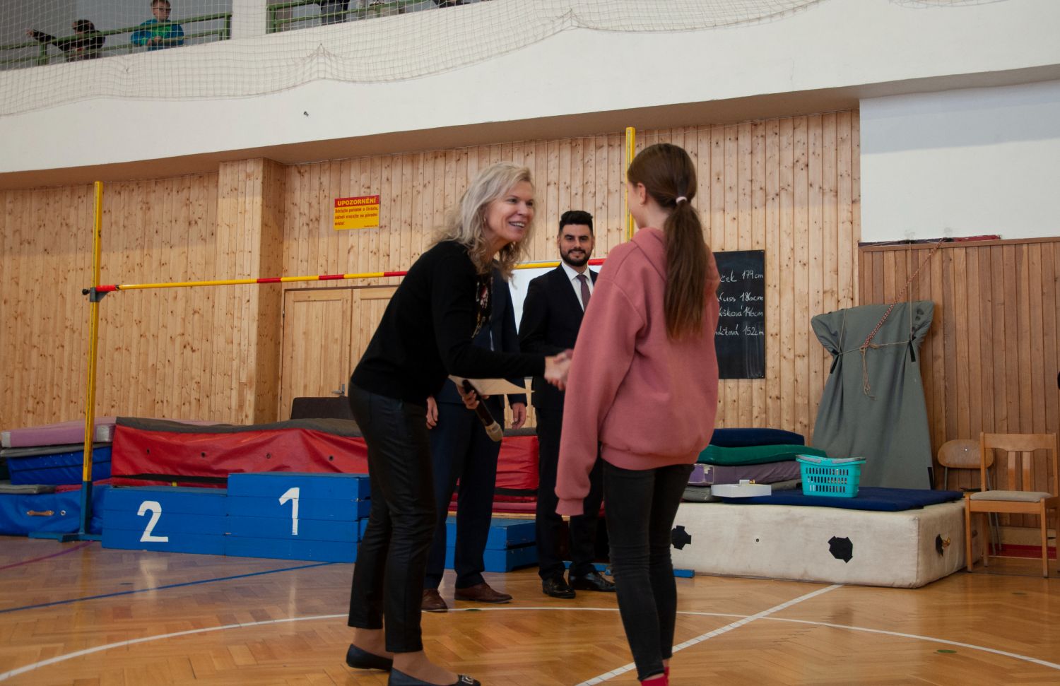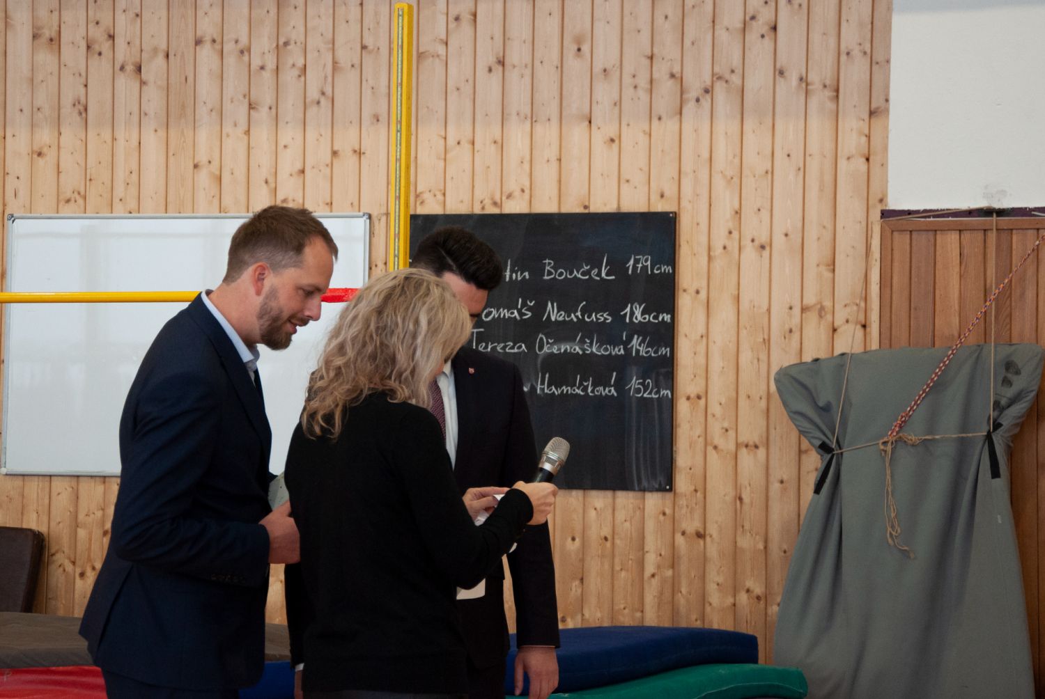 Předání cen se, v rámci tradiční akce Vánnoční laťka 2022, zhostila ředitelka školy Mgr. Eva Bednářová společně se starostou Ing. arch. Alexandrosem Kaminarasem a místostarostou Martinem Kamanem.