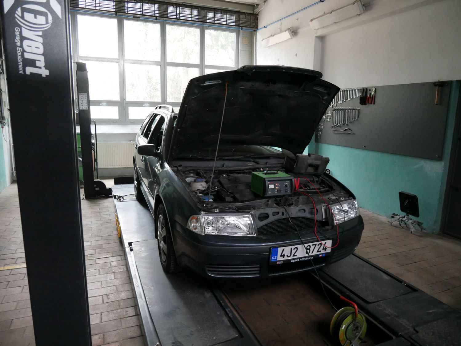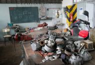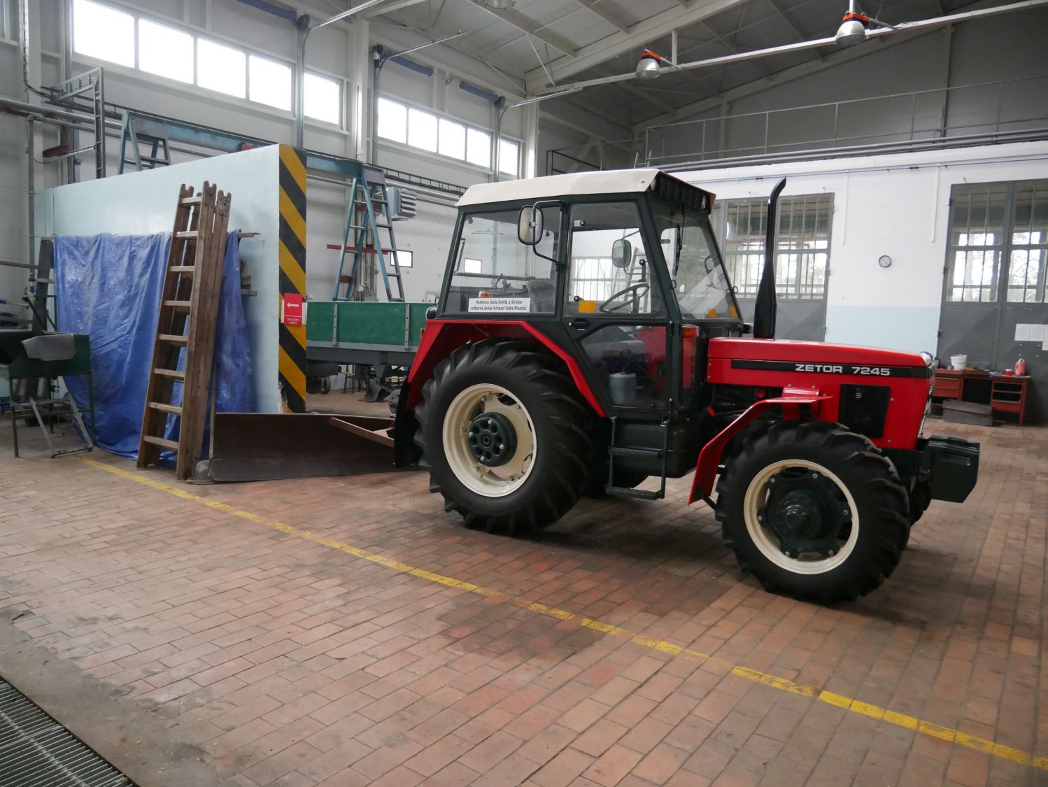 „V těchto dvou dílnách nebo spíš halách máme kompletní vybavení pro všechny tříleté učební obory," vysvětluje nám Mošner. V loňském roce toto vybavení doplnil i nový auto trenažér a autodílnu nový pětitunový zvedák s dalším speciálním nářadím.
