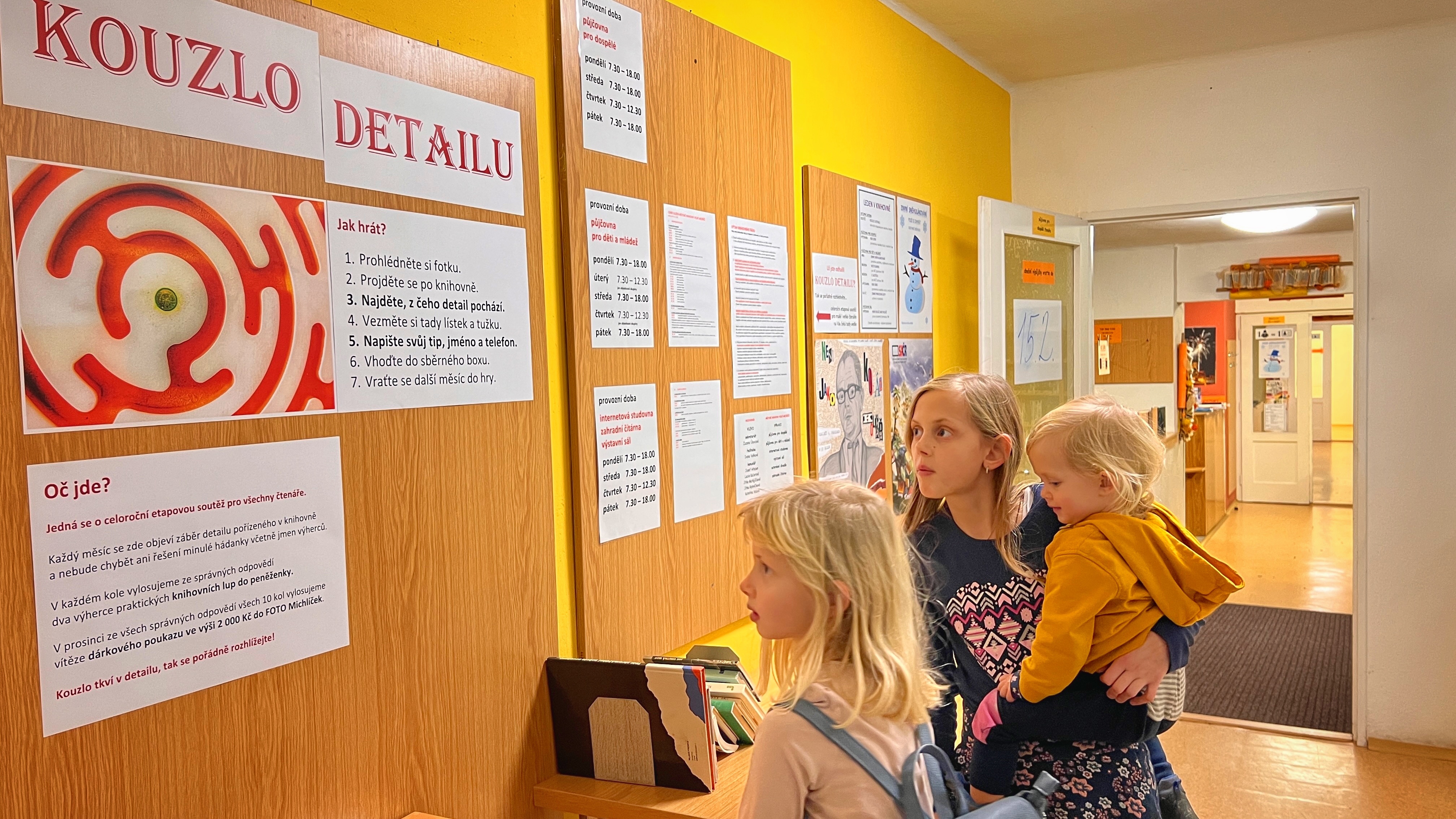 Letos? Etapová soutěž Kouzlo detailu je prima v tom, že se do ní dá pustit jednou i opakovaně kdykoliv až do prosince. Zato pouze v únoru lze hrát hned tři MALÉ HRY. Čtenářky už se těší na tradiční dámský kvíz, tentokrát Obrazy v knihách. Nechybí léty prověřená soutěž pro děti od 2 do 5 nazvaná Nakresli. A co si tak přijít vyzkoušet usadit kuličky do důlků... zkrátka prubnout Sněhulákování? Tak vidíte, co všechno zmůže taková kartička do knihovny. Už ji máte taky?